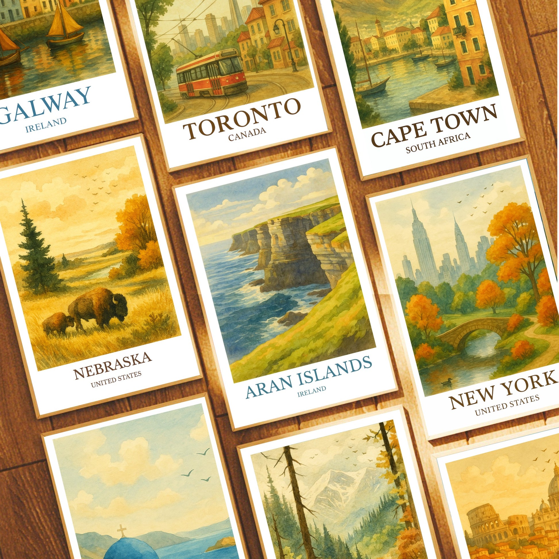 Aran Islands Print – Designed in a beautiful vintage watercolor style. Printed on premium quality paper, and beautiful wooden framing options.