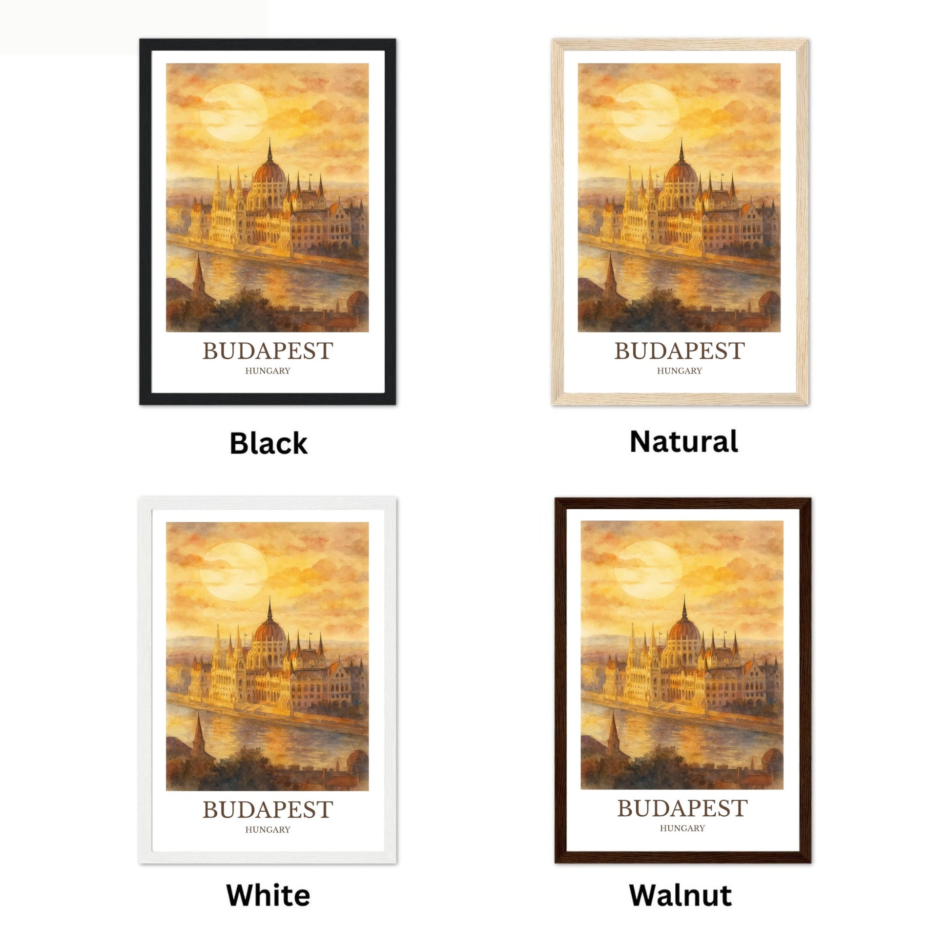 Budapest Print – Designed in a beautiful vintage watercolor style. Printed on premium quality paper, and beautiful wooden framing options.