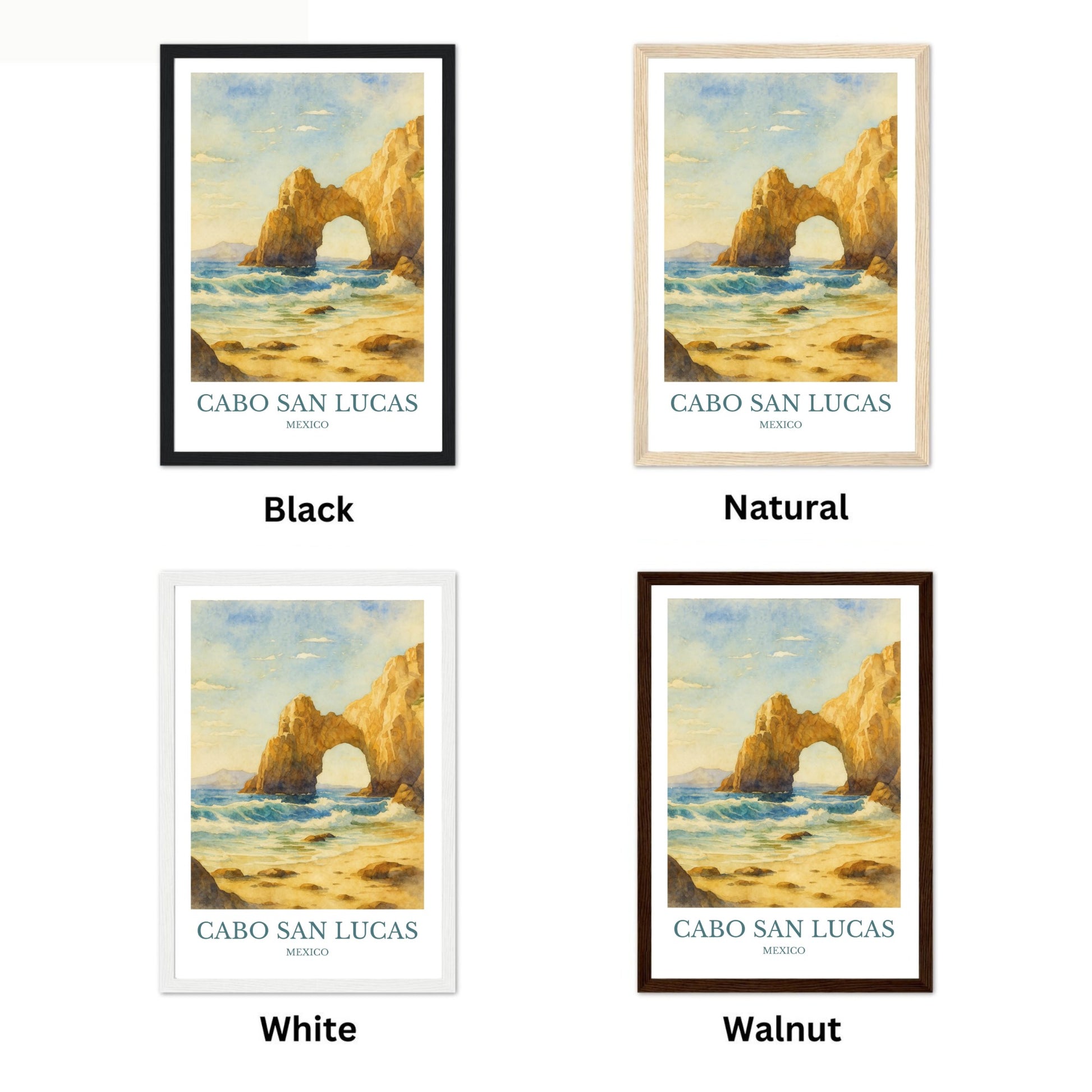 Cabo San Lucas Print – Designed in a beautiful vintage watercolor style. Printed on premium quality paper, and beautiful wooden framing options.
