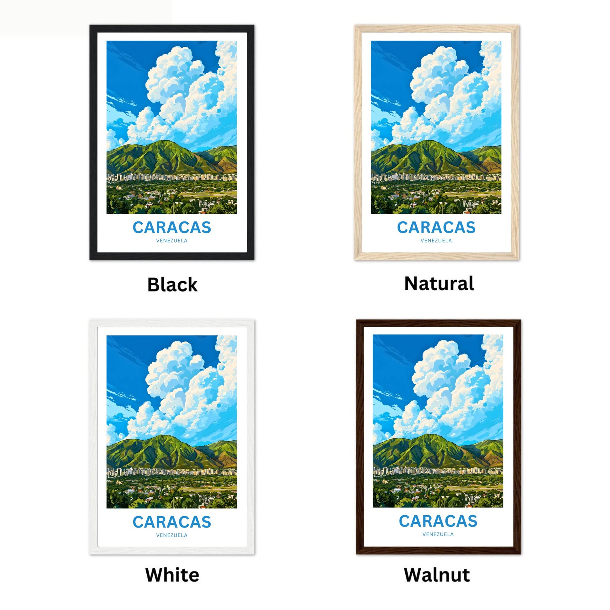 At our shop, we offer a framing service to help you enhance and preserve your artwork. We offer a selection of four beautiful wooden frames to choose from: Black, Walnut, Natural, and White