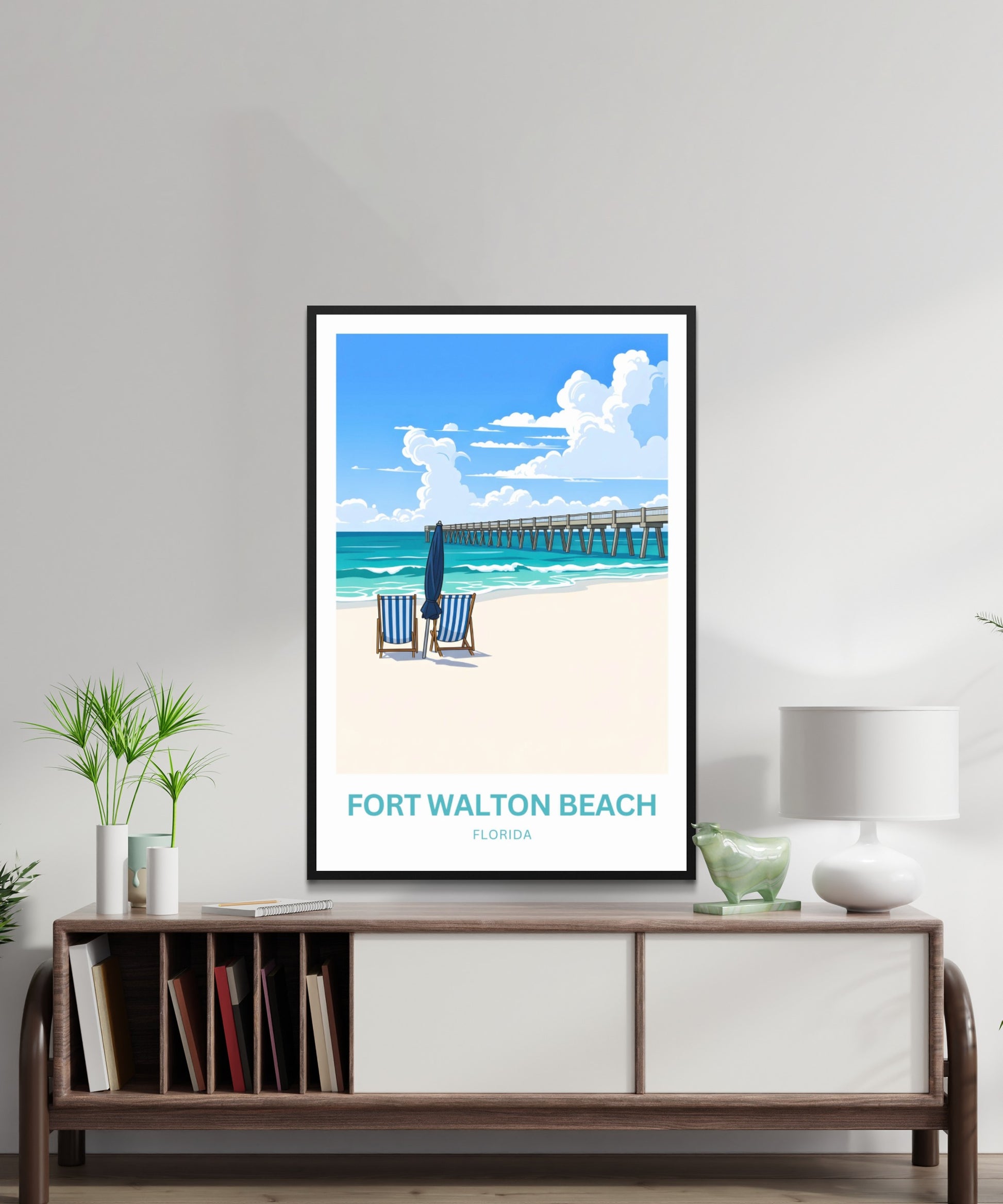 Are you looking for modern, minimalist, and aesthetic wall decoration to elevate your interior design? Then you will fall in love with this wall art print of Fort Walton Beach!