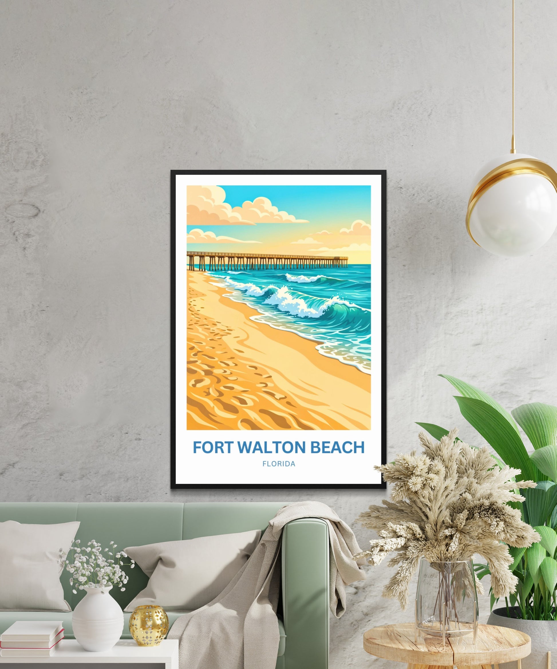 Are you looking for modern, minimalist, and aesthetic wall decoration to elevate your interior design? Then you will fall in love with this wall art print of Fort Walton Beach!