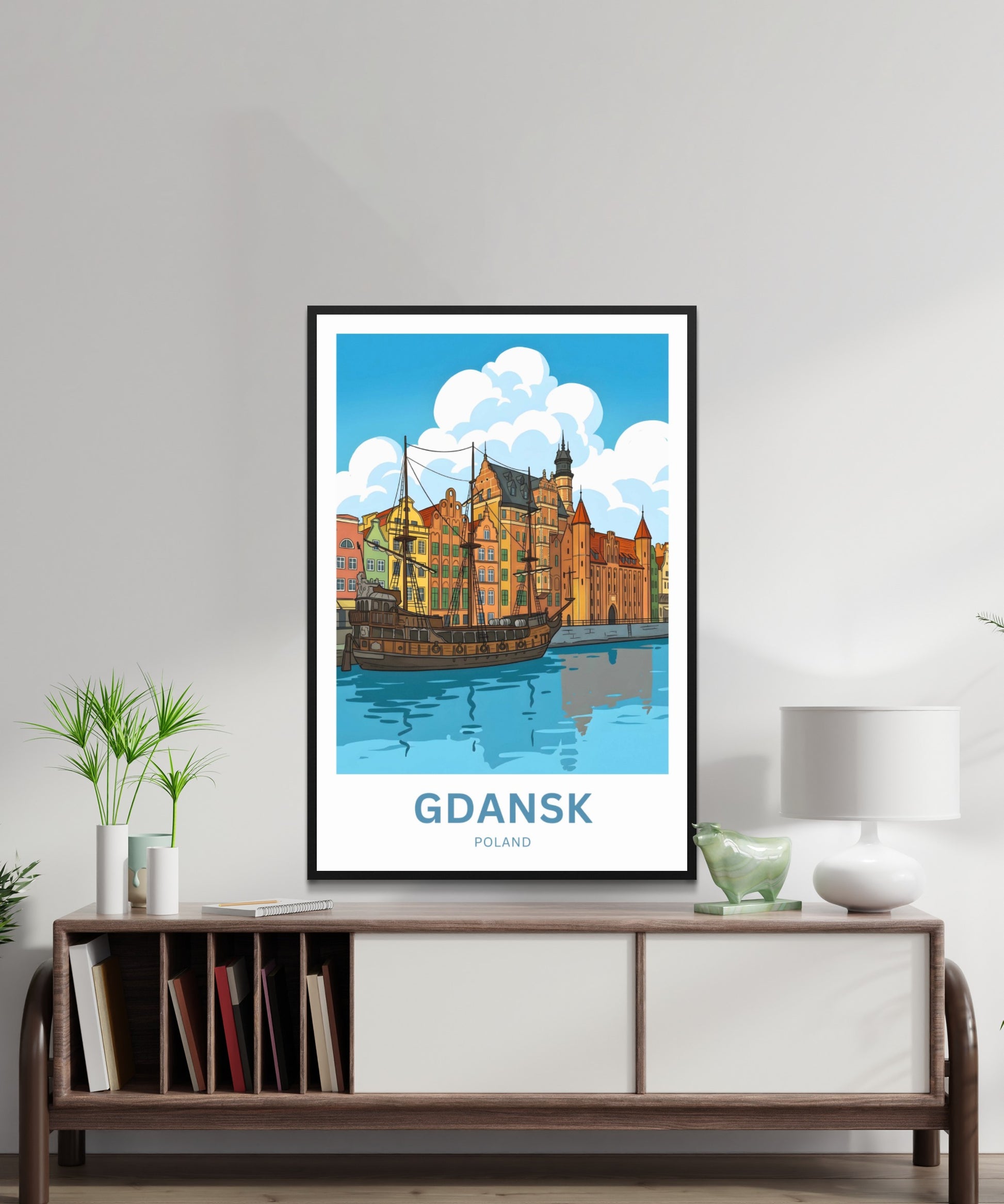 Are you looking for modern, minimalist, and aesthetic wall decoration to elevate your interior design? Then you will fall in love with this wall art print of Gdańsk!