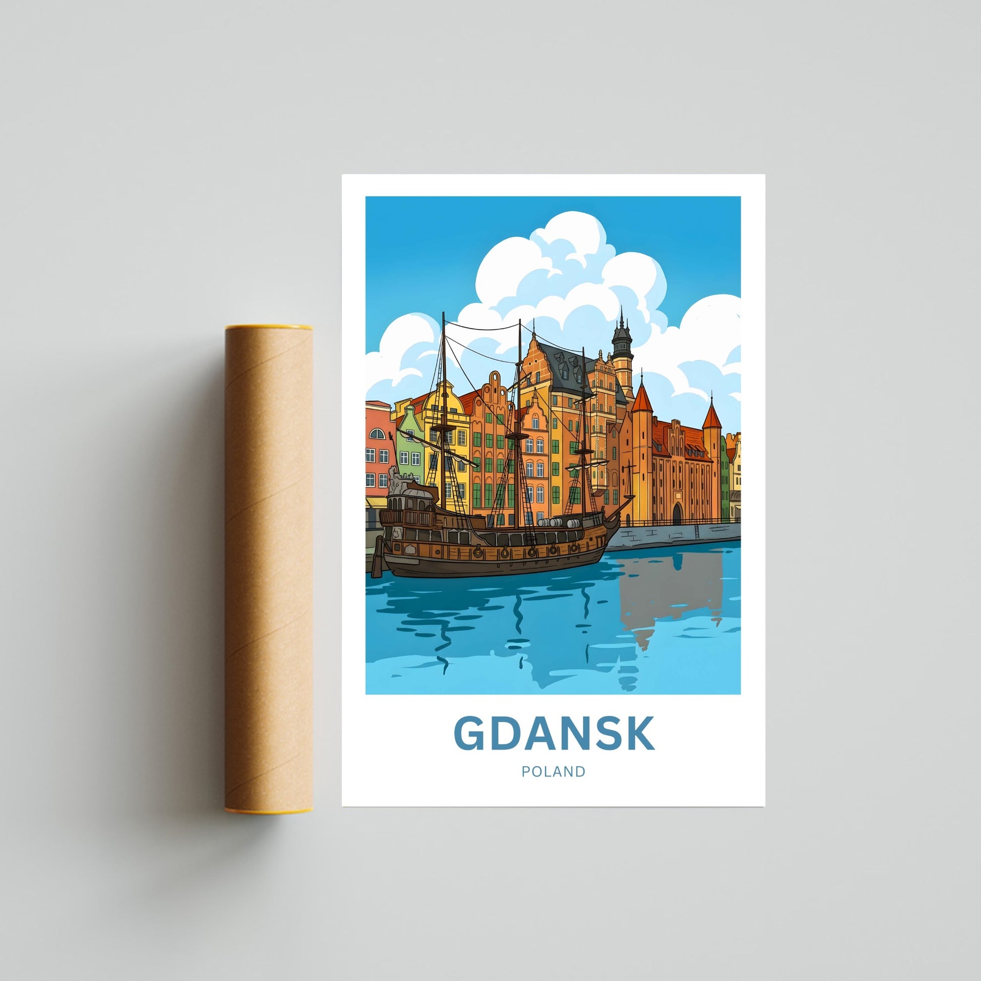 Gdańsk Travel Poster - Poland Historic Ship