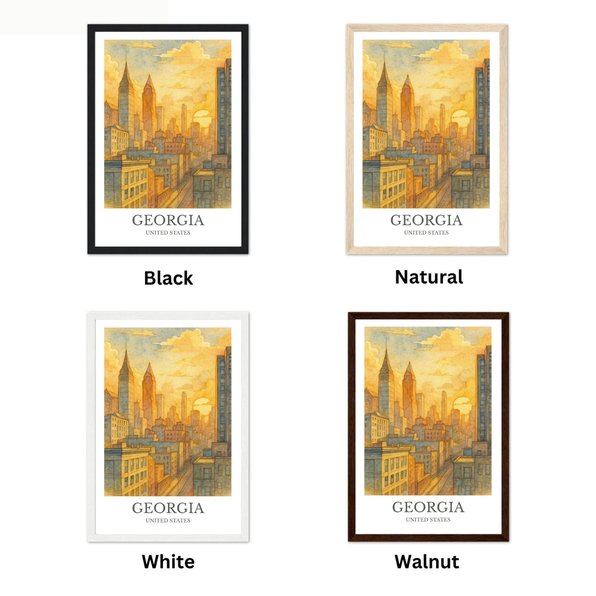 Georgia Print – Designed in a beautiful vintage watercolor style. Printed on premium quality paper, and beautiful wooden framing options.