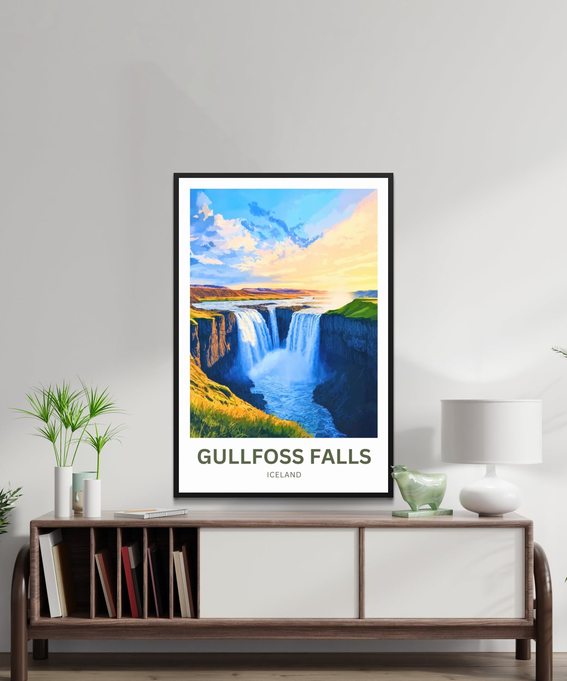 Gullfoss Falls Travel Poster - Majestic Waterfalls of Iceland