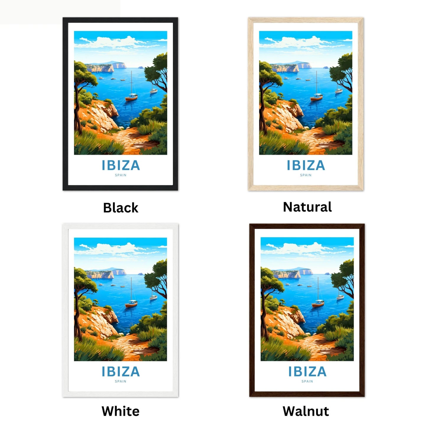 At our shop, we offer a framing service to help you enhance and preserve your artwork. We offer a selection of four beautiful wooden frames to choose from: Black, Walnut, Natural, and White