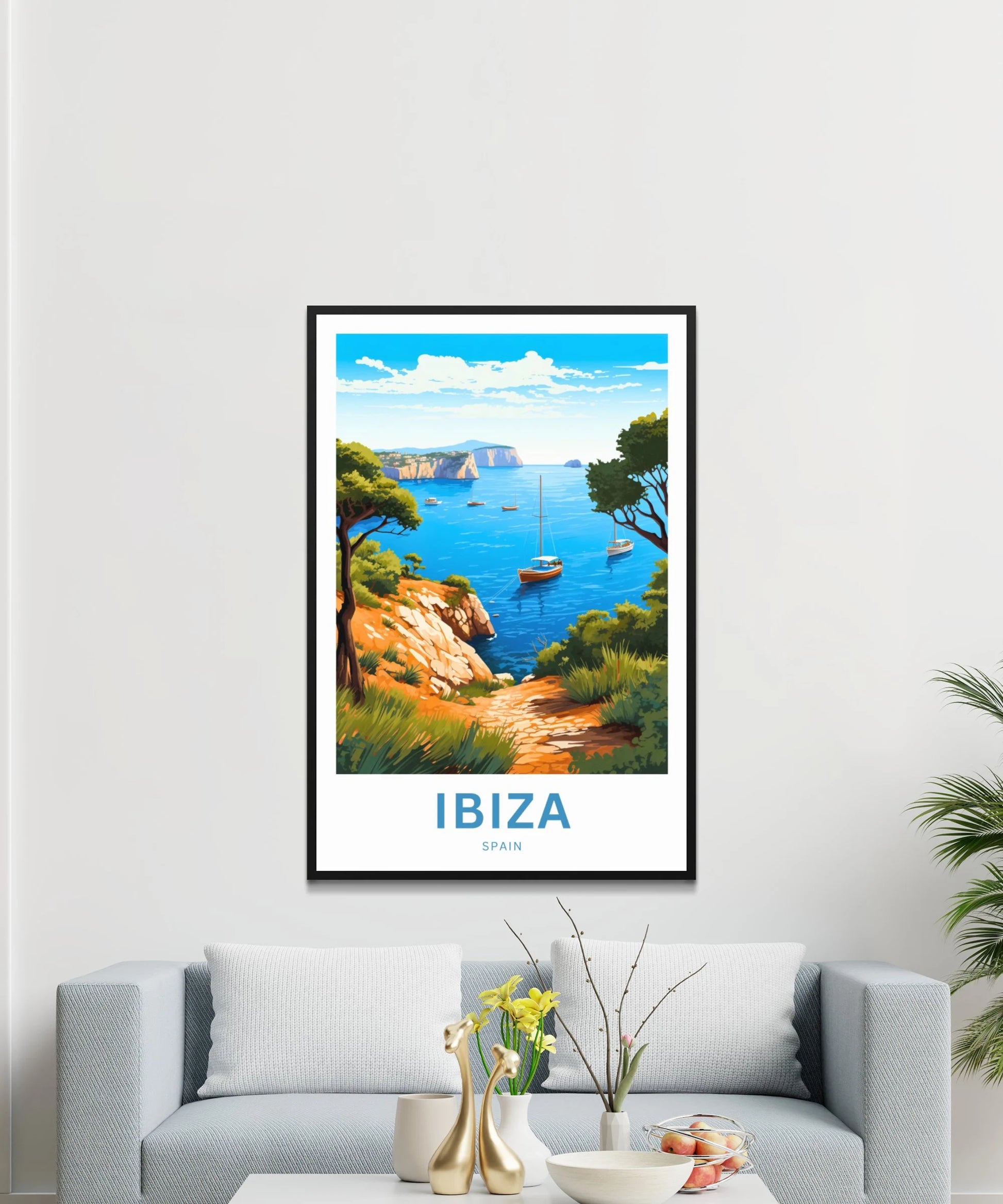 Are you looking for modern, minimalist, and aesthetic wall decorations to elevate your interior design? Then you will fall in love with this wall art print of Ibiza!