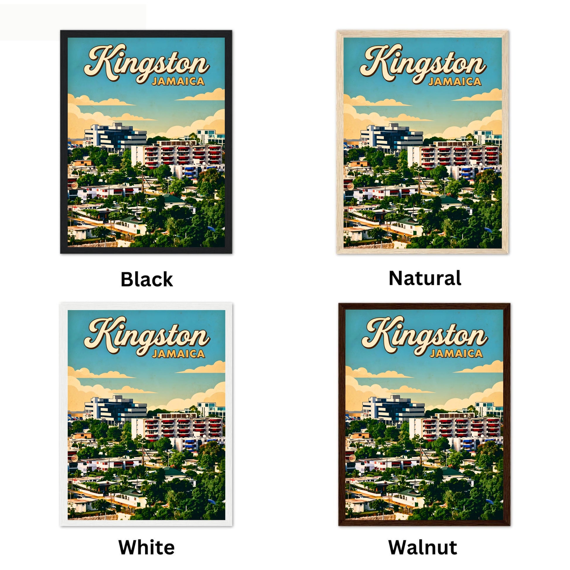 At our shop, we offer a framing service to help you enhance and preserve your artwork. We offer a selection of four beautiful wooden frames to choose from: Black, Walnut, Natural, and White