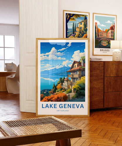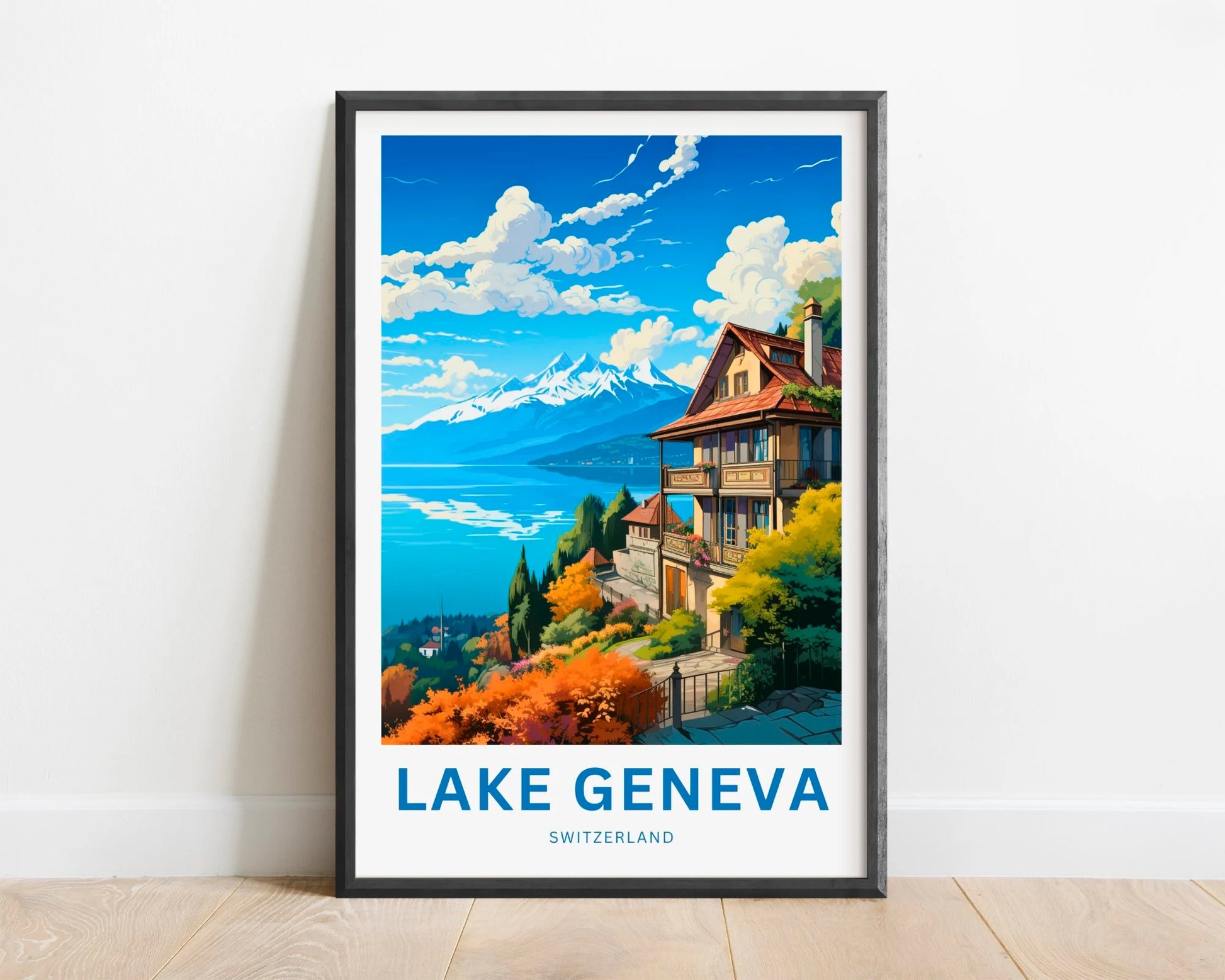 Are you looking for modern, minimalist, and aesthetic wall decoration to elevate your interior design? Then you will fall in love with this wall art print of the Lake Geneva!