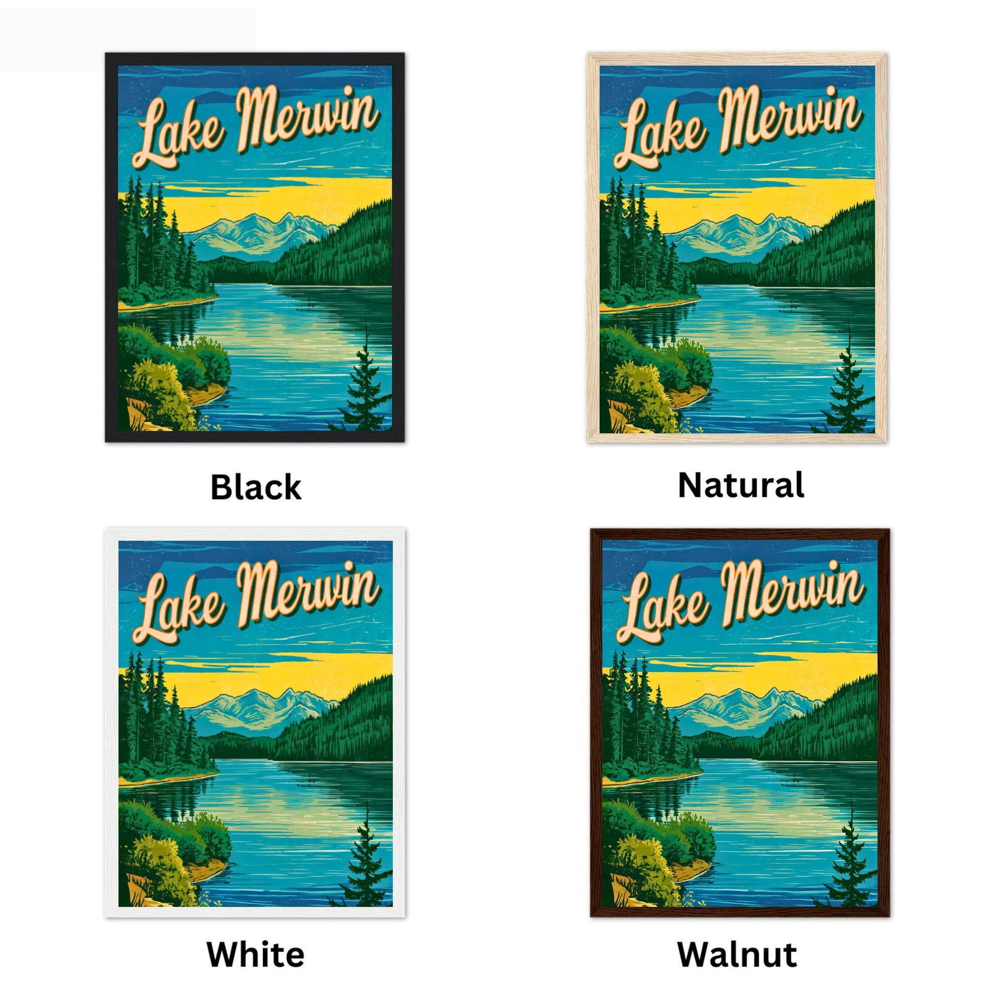 At our shop, we offer a framing service to help you enhance and preserve your artwork. We offer a selection of four beautiful wooden frames to choose from: Black, Walnut, Natural, and White