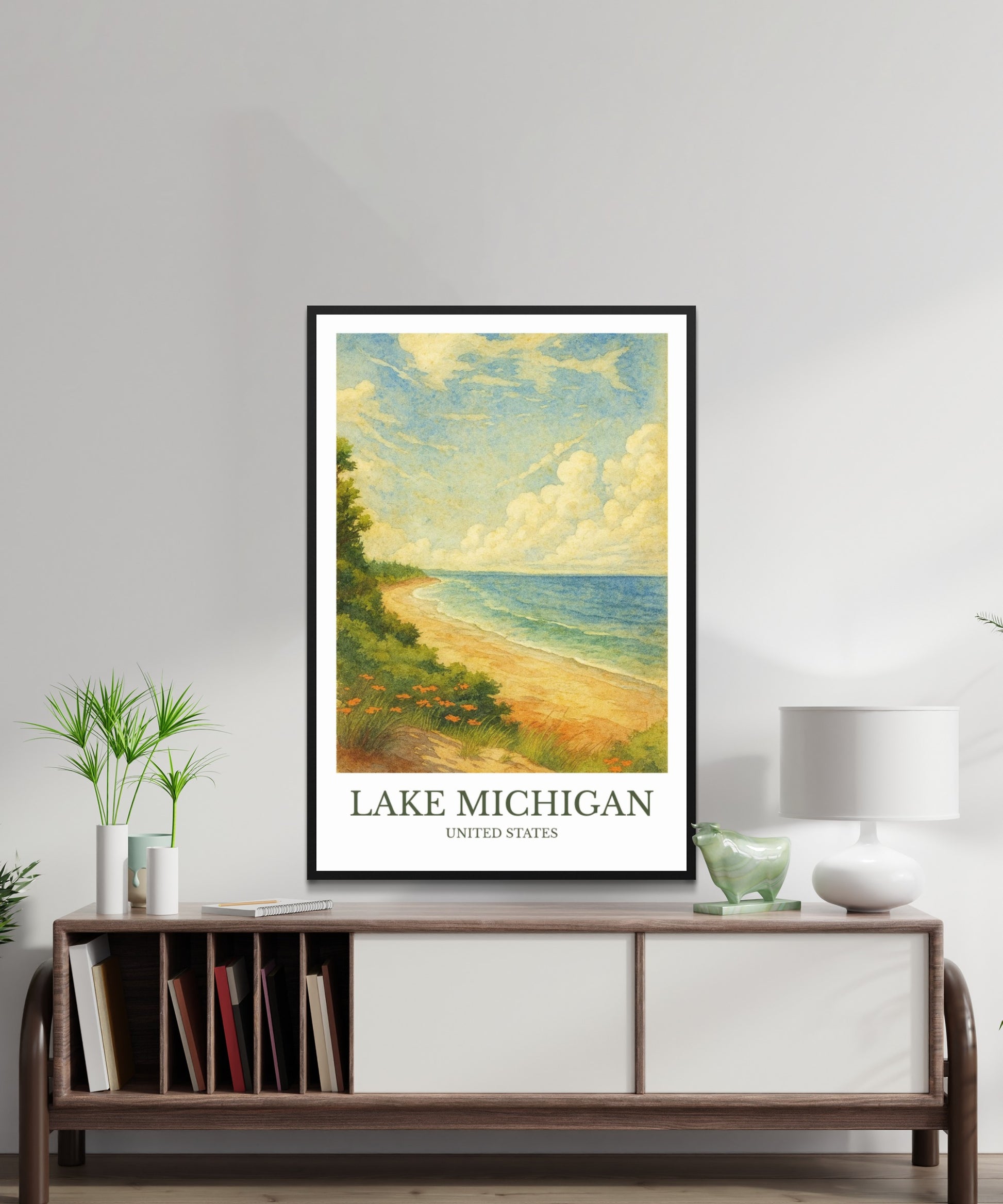 Lake Michigan, Watercolor design poster, North America’s Great Lakes Print, Lake Michigan Wall Art