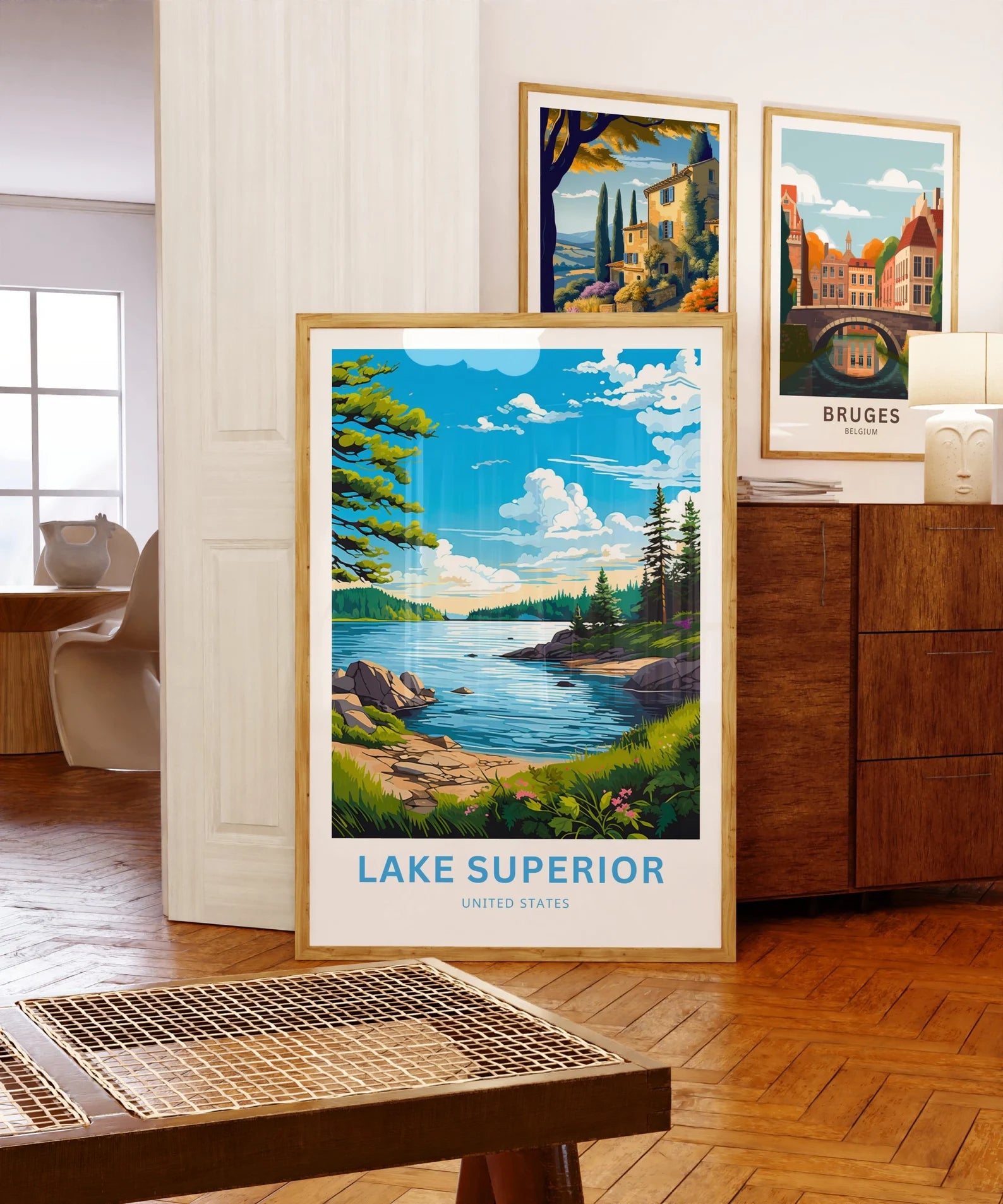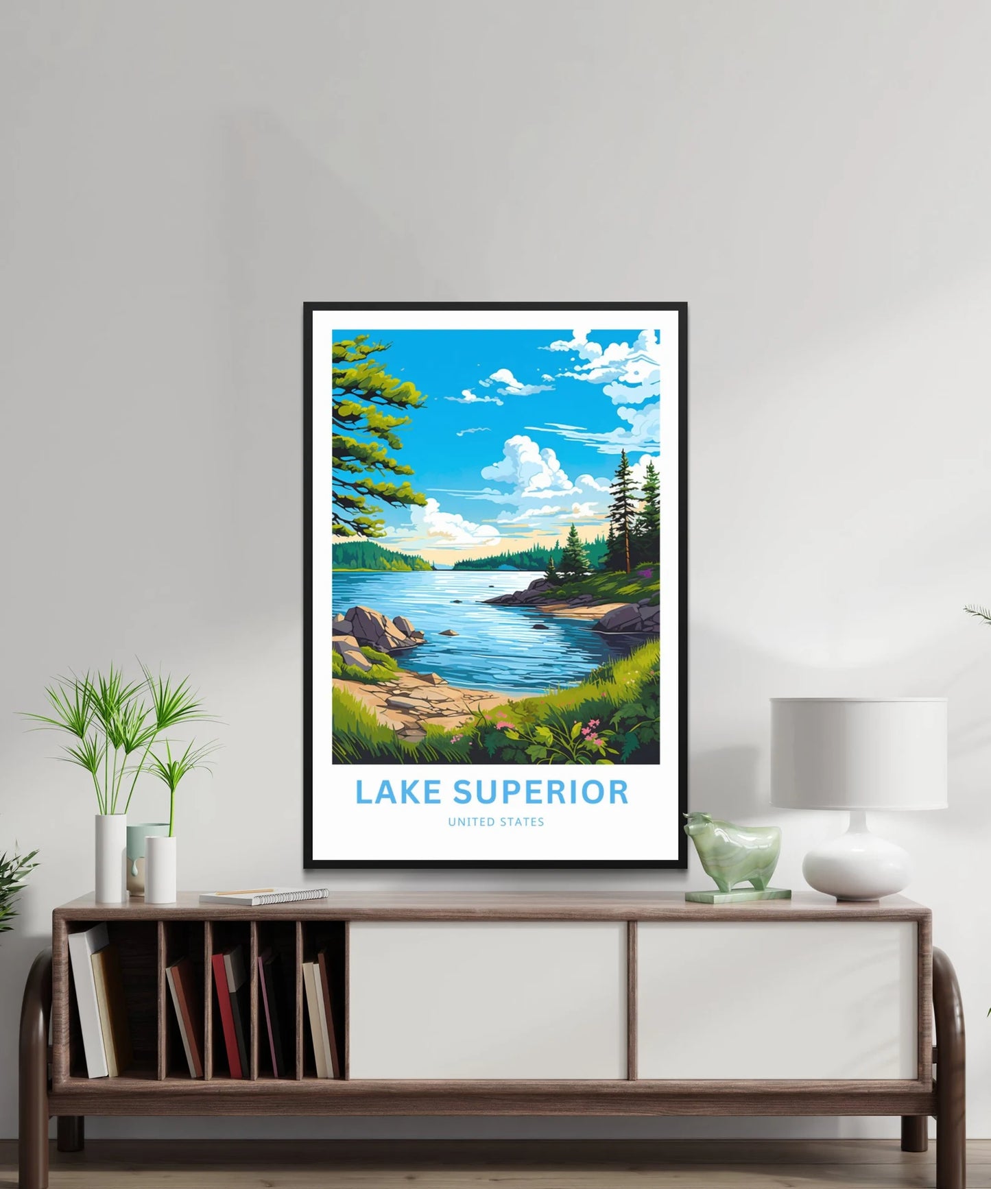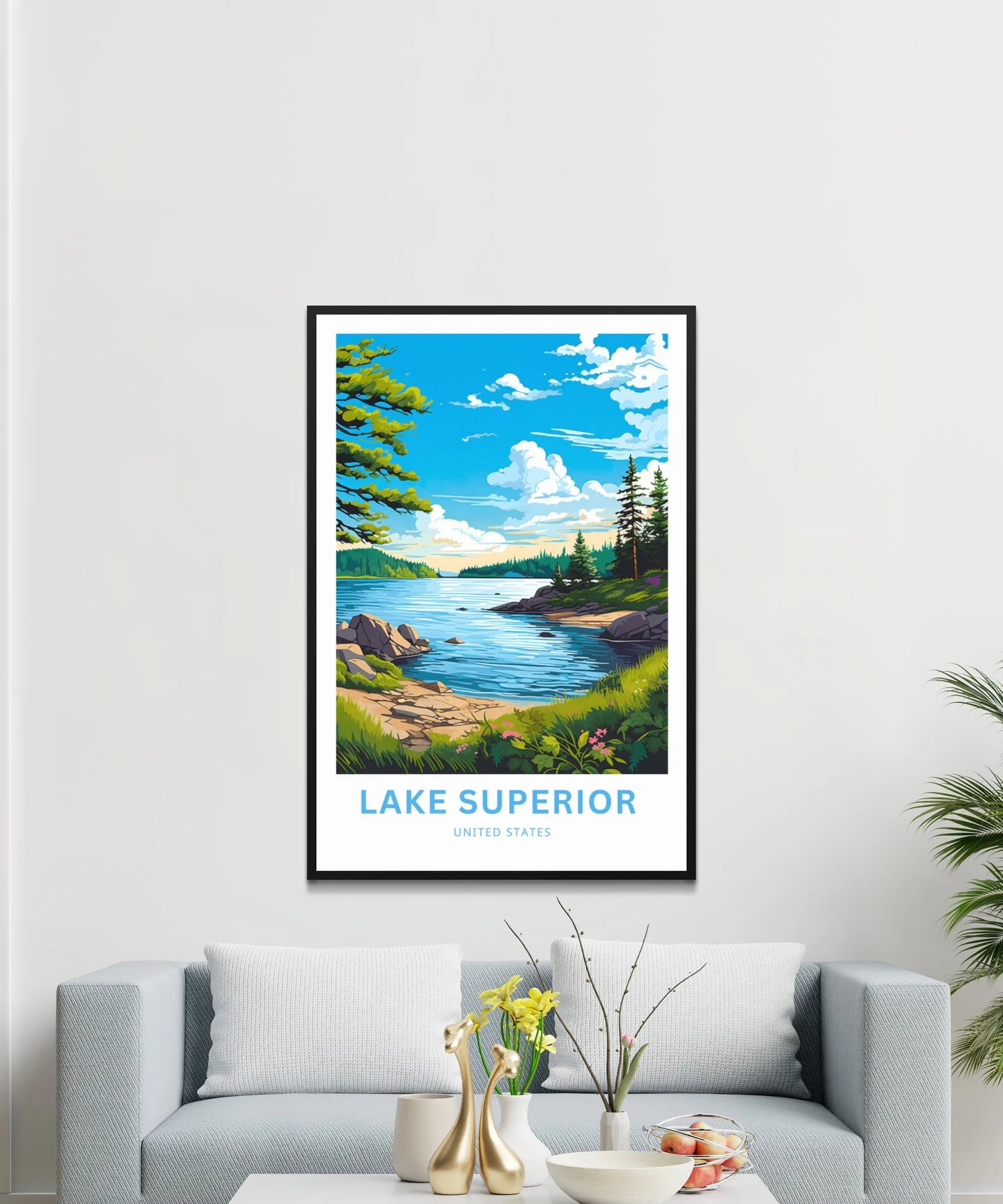 Are you looking for modern, minimalist, and aesthetic wall decoration to elevate your interior design? Then you will fall in love with this wall art print of Lake Superior!