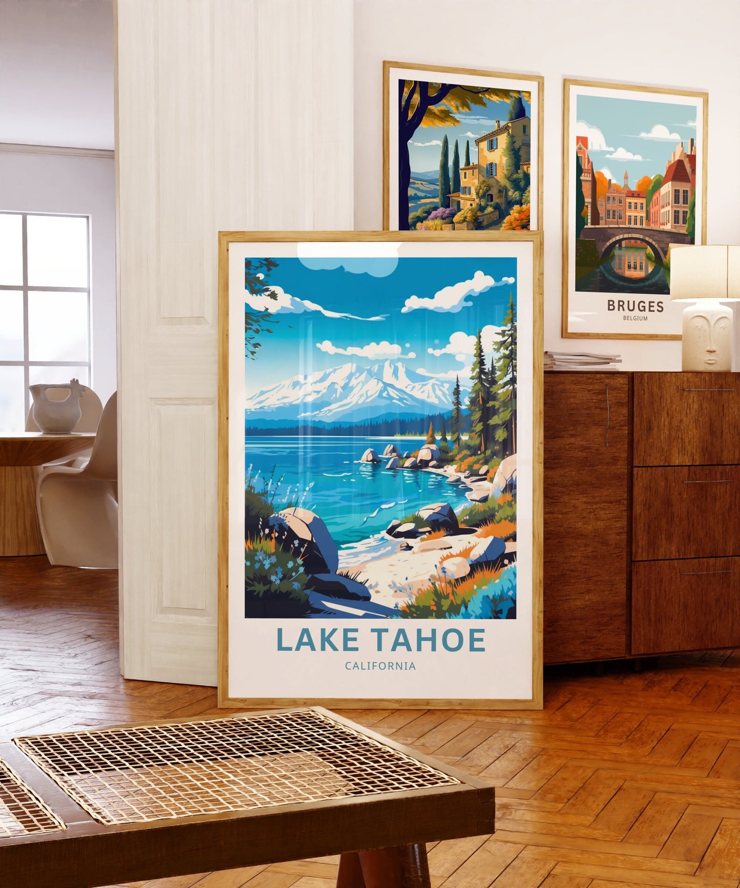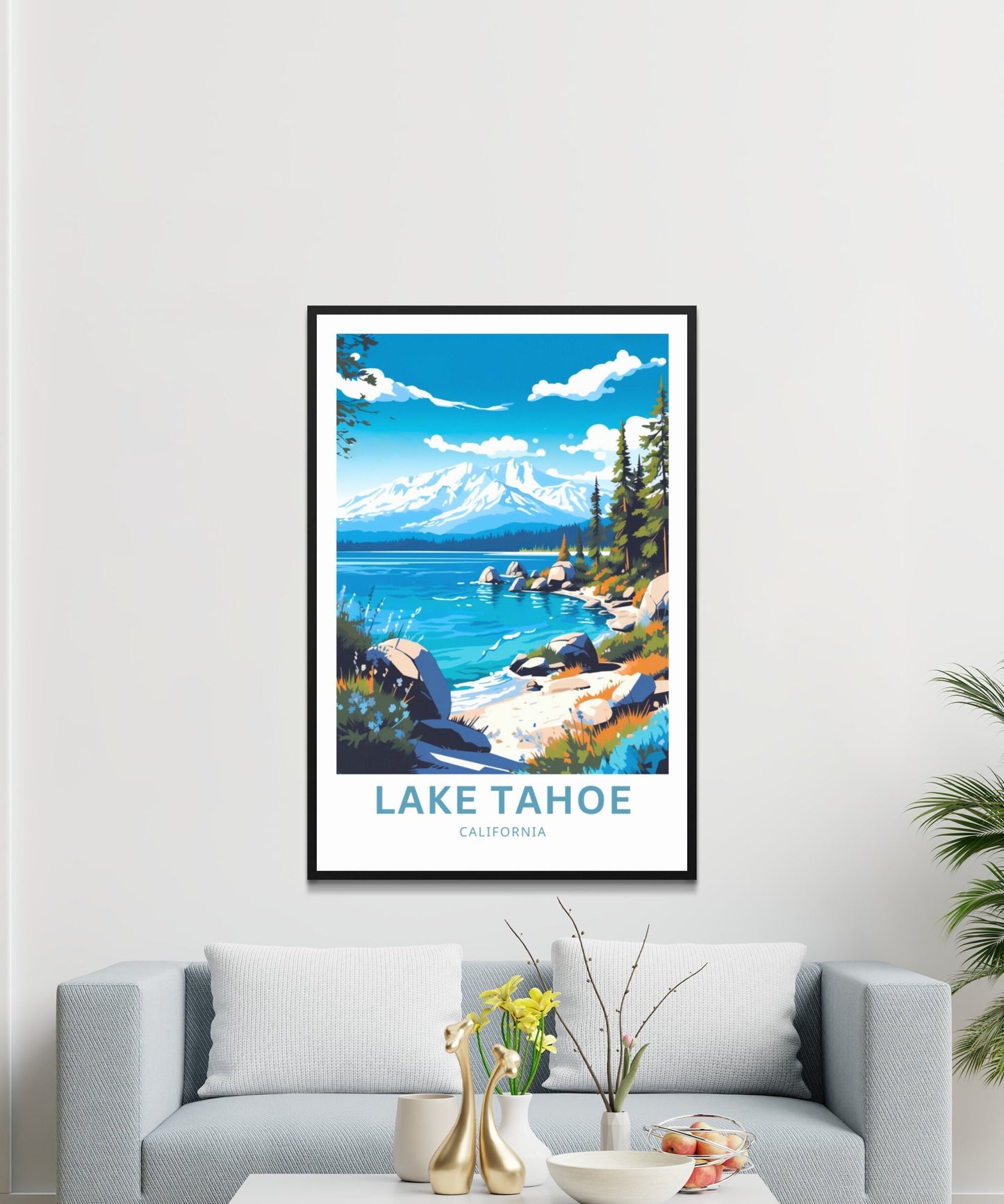 Are you looking for modern, minimalist, and aesthetic wall decoration to elevate your interior design? Then you will fall in love with this wall art print of Lake Tahoe!