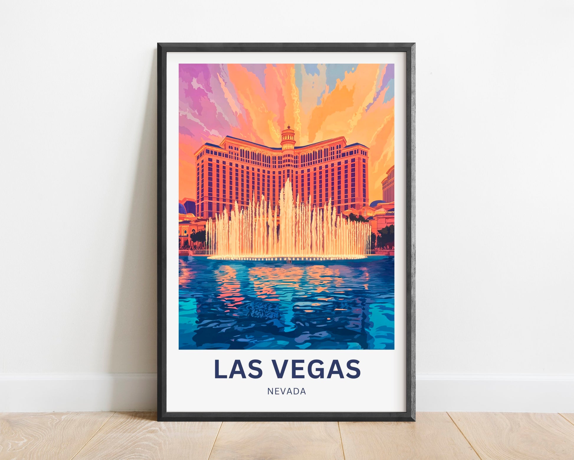 Las Vegas Travel Poster - Featuring Stunning Bellagio fountains