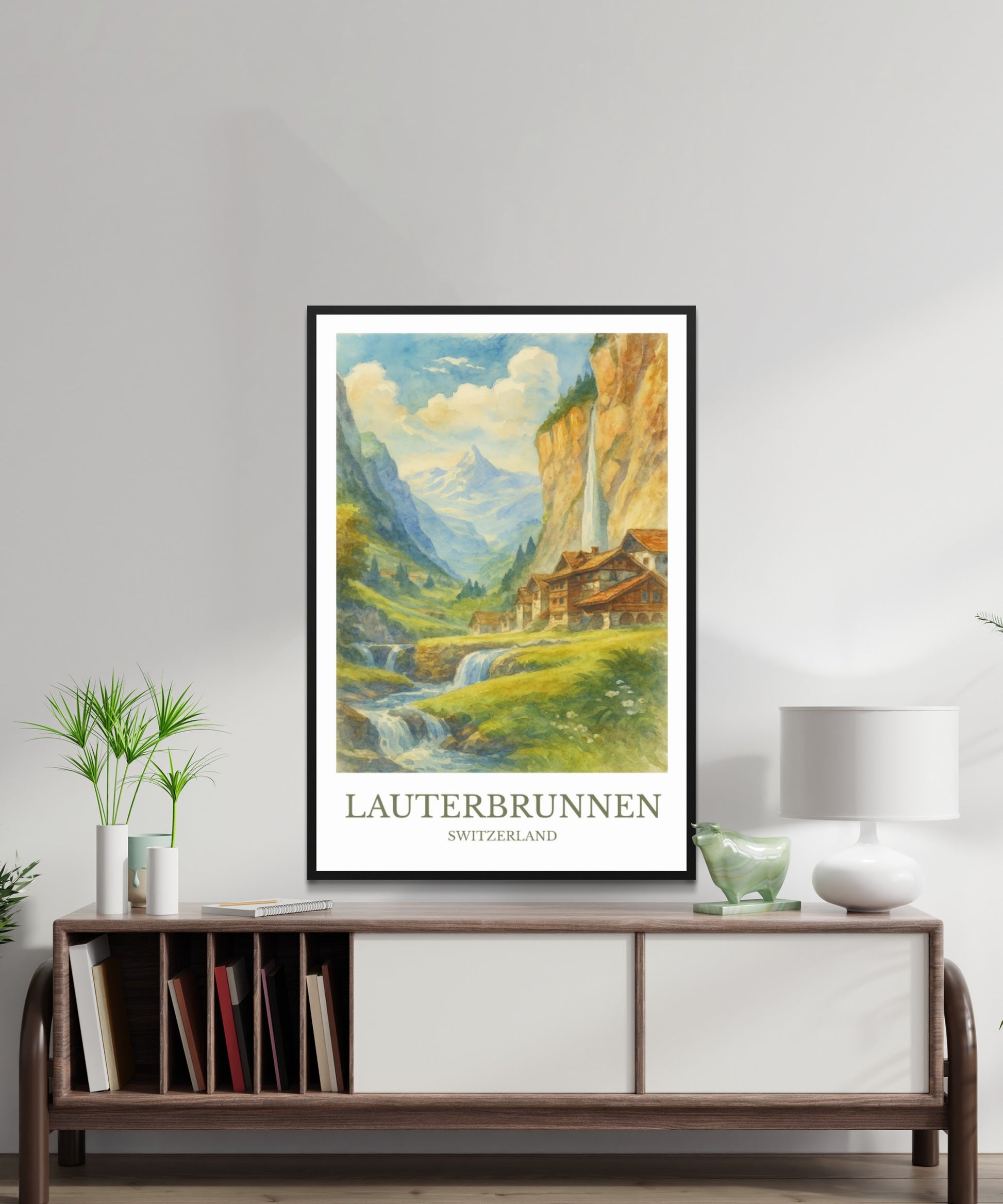Lauterbrunnen, Watercolor design poster, Switzerland Print, Lauterbrunnen Wall Art