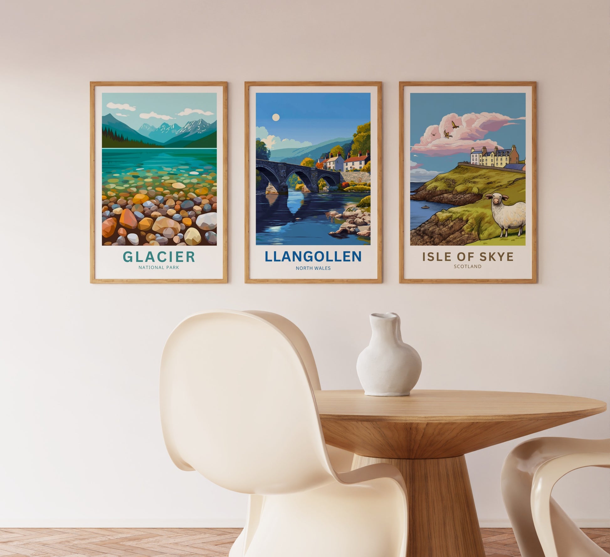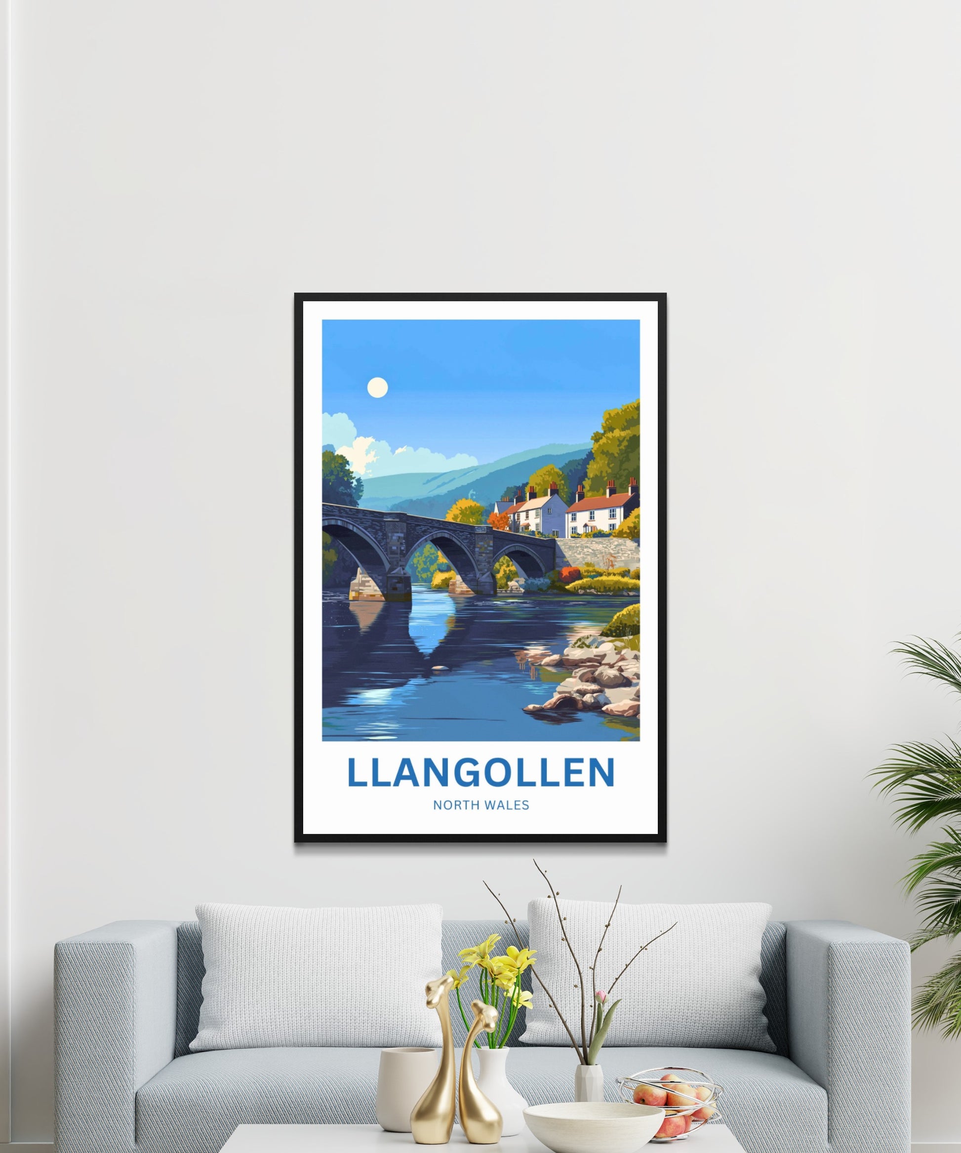Are you looking for modern, minimalist, and aesthetic wall decoration to elevate your interior design? Then you will fall in love with this wall art print of Llangollen!