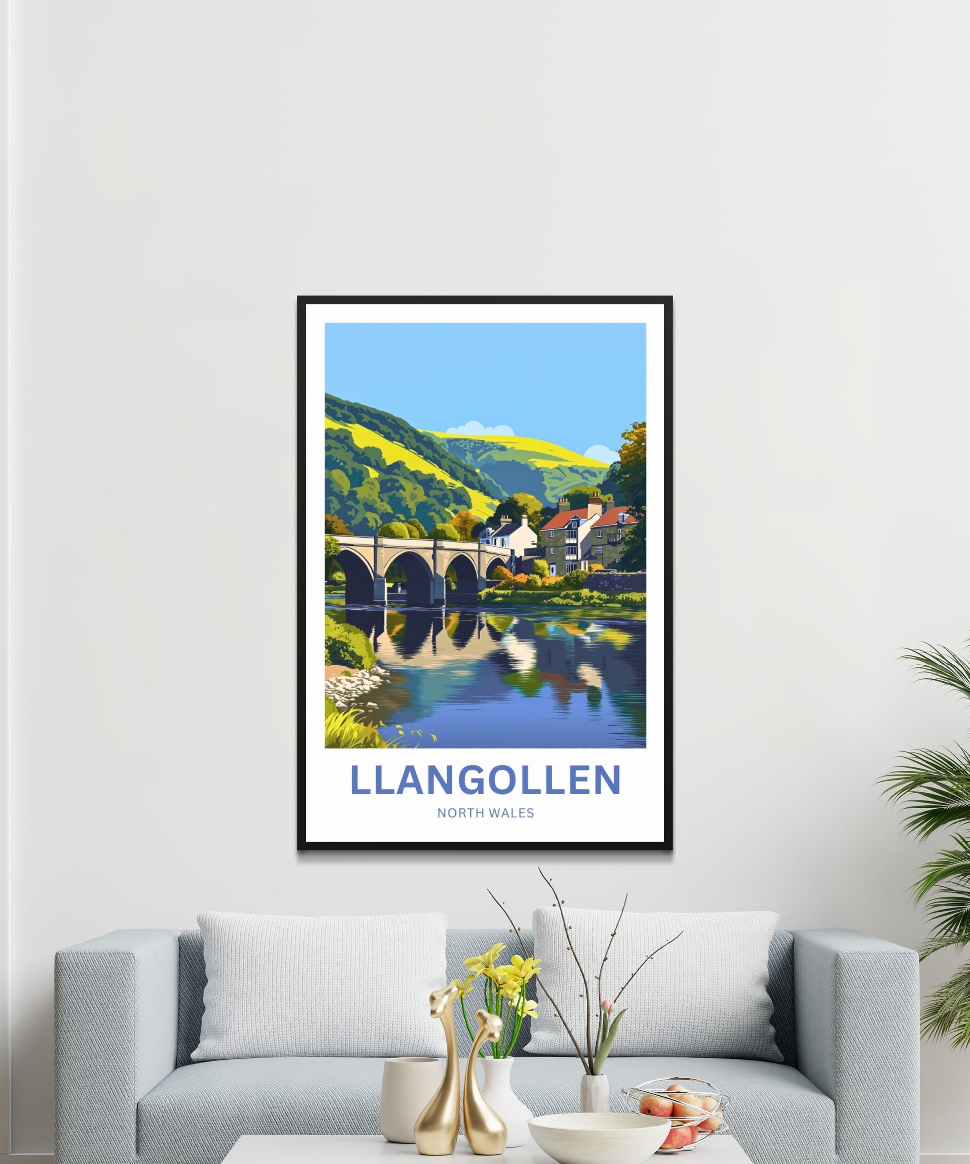 Are you looking for modern, minimalist, and aesthetic wall decoration to elevate your interior design? Then you will fall in love with this wall art print of Llangollen!