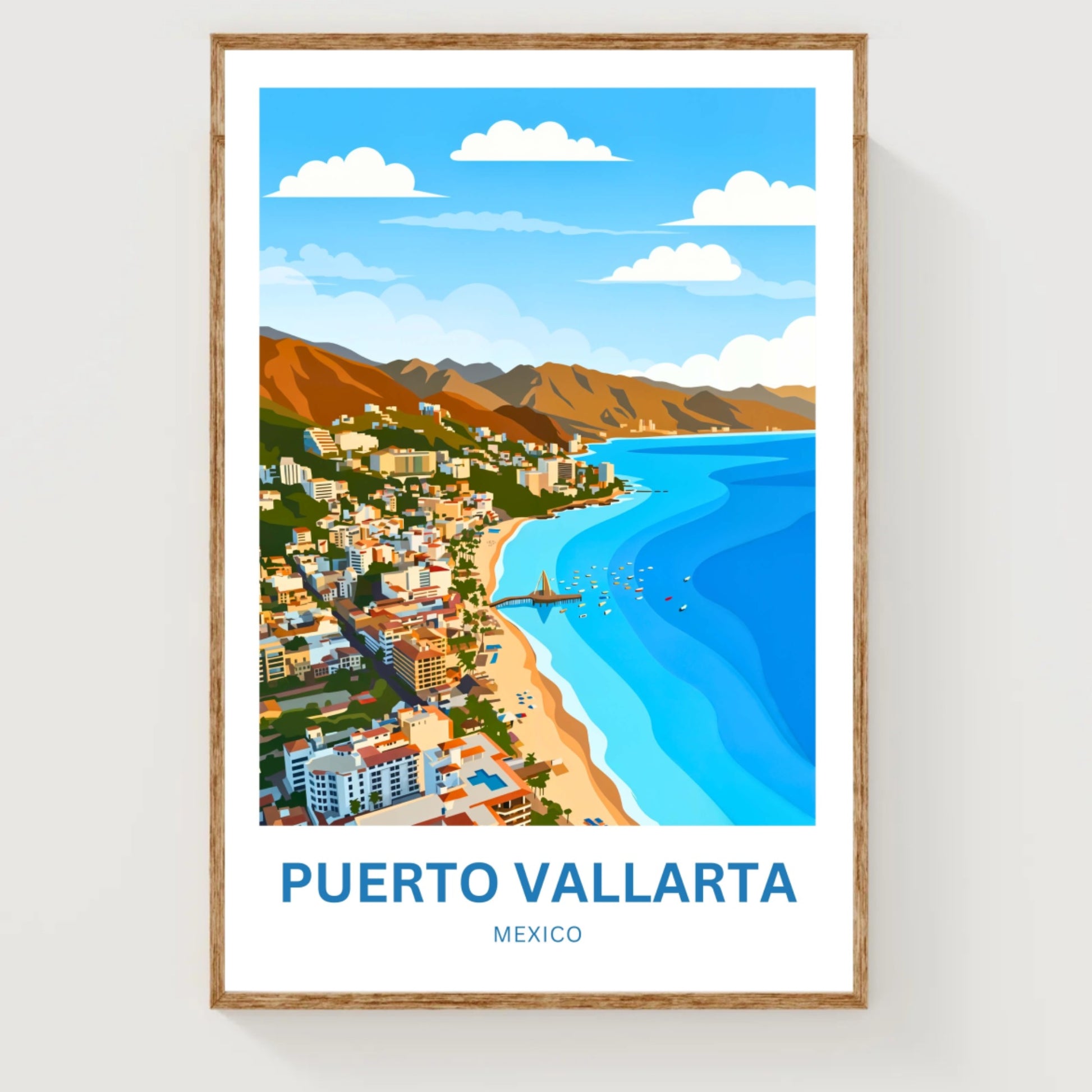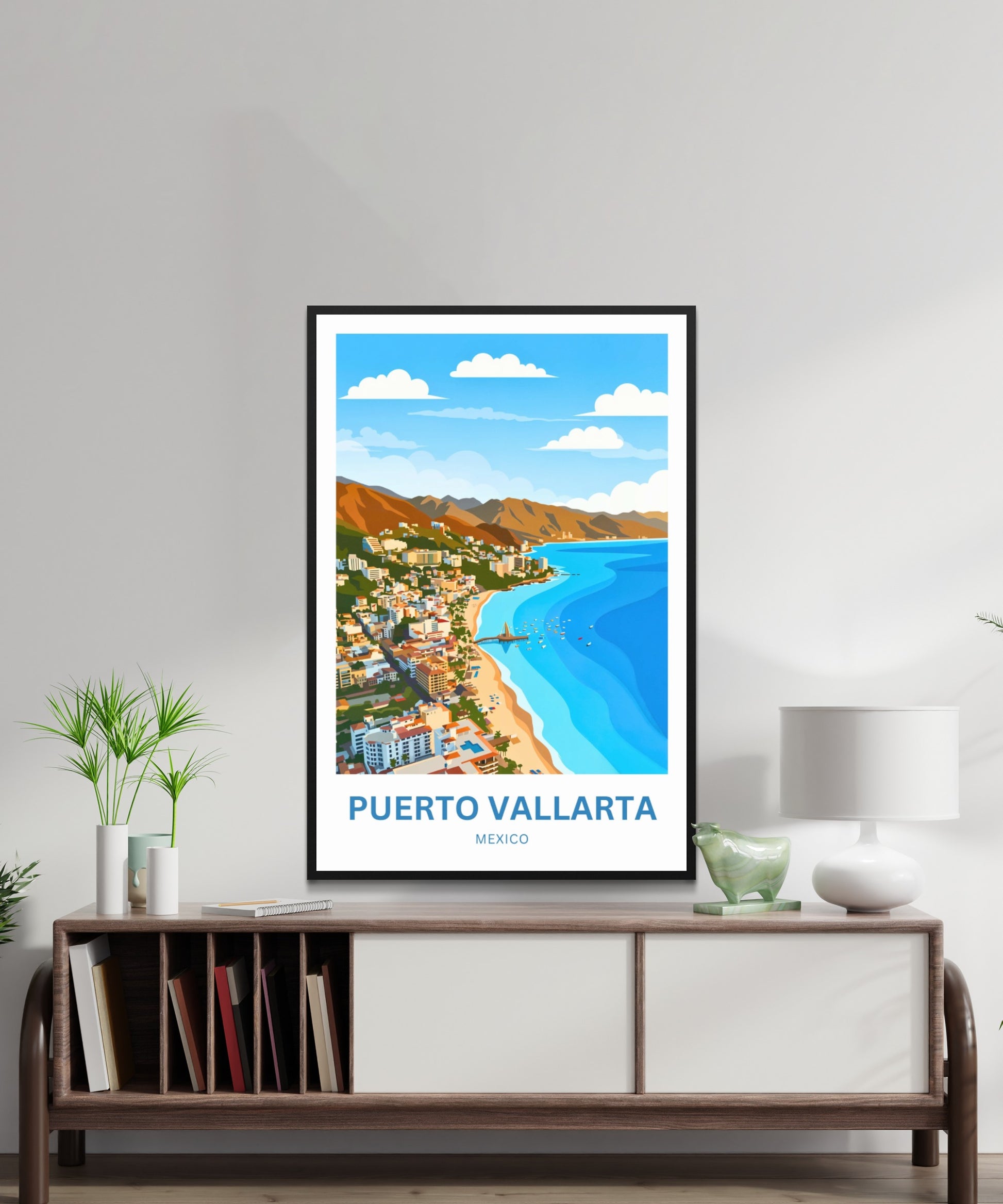 Are you looking for modern, minimalist, and aesthetic wall decoration to elevate your interior design? Then you will fall in love with this wall art print of Puerto Vallarta!