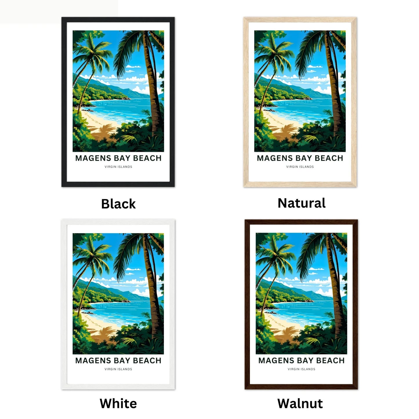 At our shop, we offer a framing service to help you enhance and preserve your artwork. We offer a selection of four beautiful wooden frames to choose from: Black, Walnut, Natural, and White.