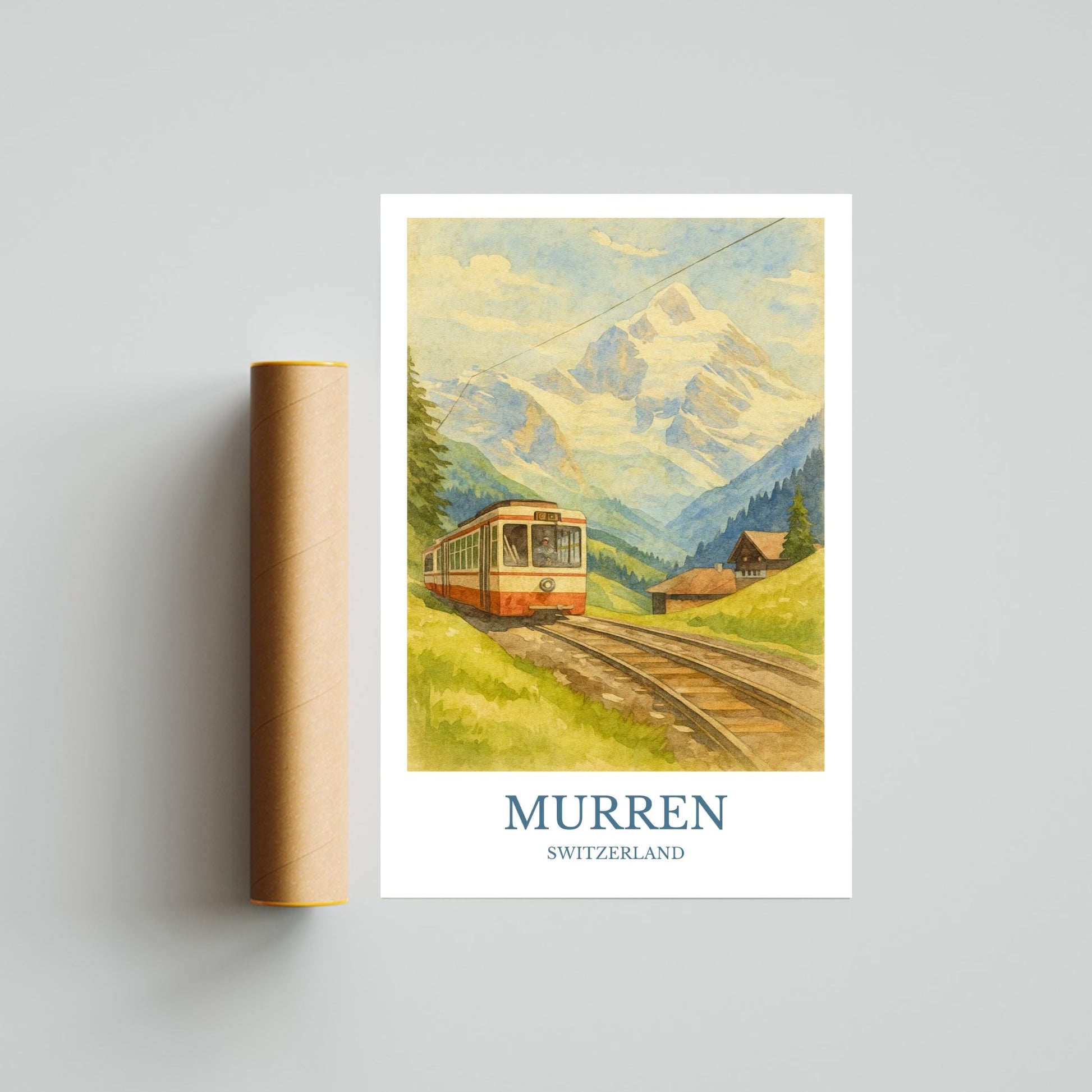 Mürren, Watercolor design poster, Switzerland Print, Mürren Wall Art