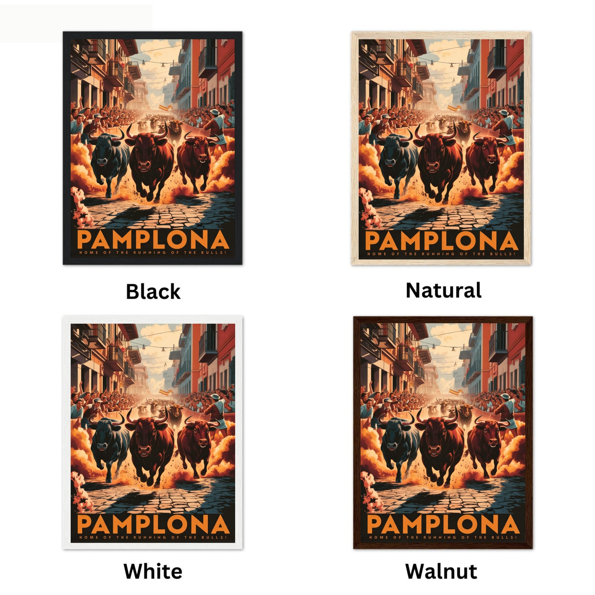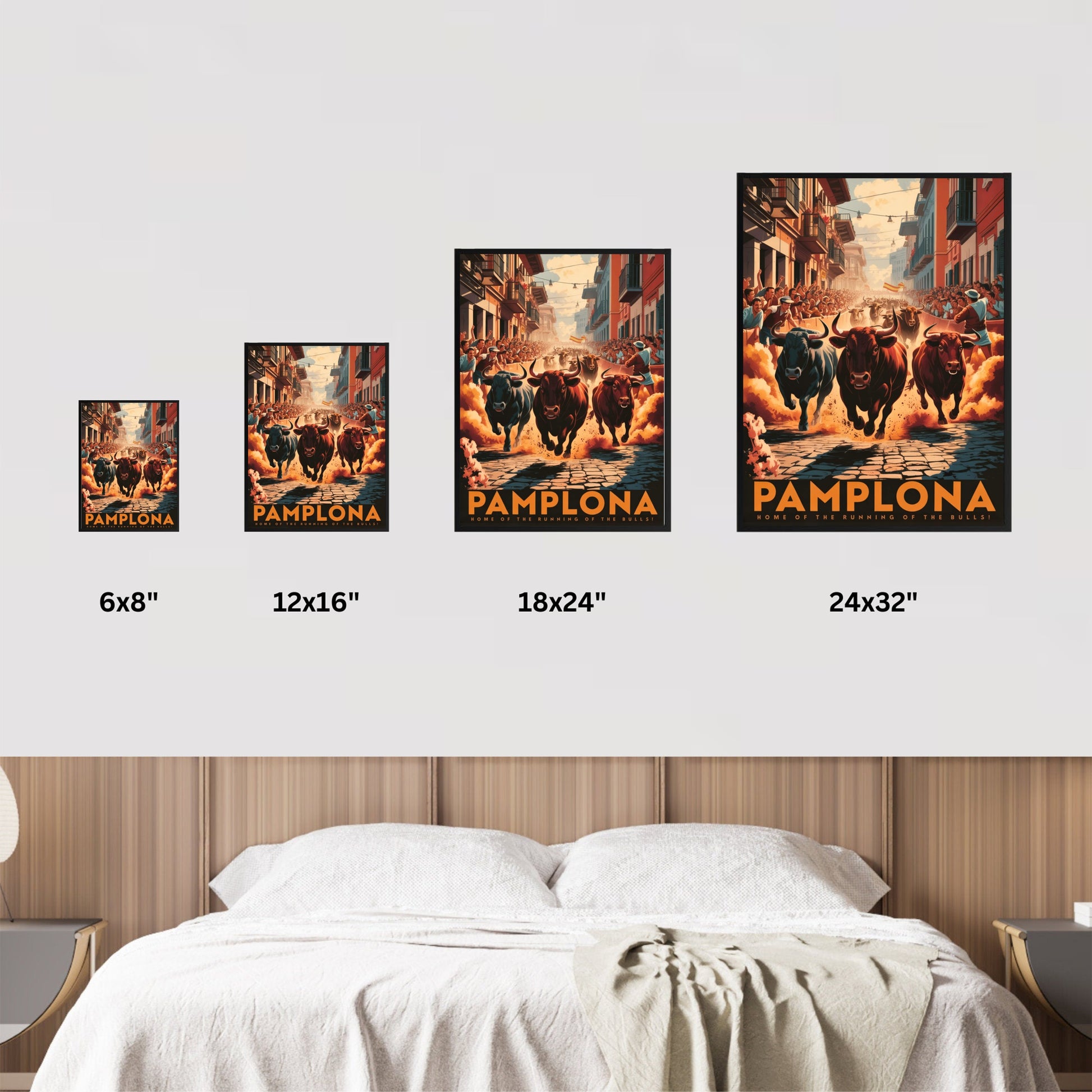 Pamplona Vintage Travel Poster - Running Bulls Race