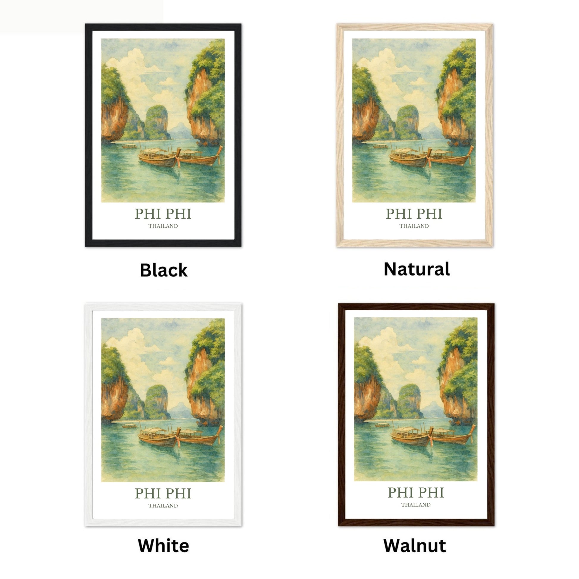 Phi Phi Print – Designed in a beautiful vintage watercolor style. Printed on premium quality paper, and beautiful wooden framing options.