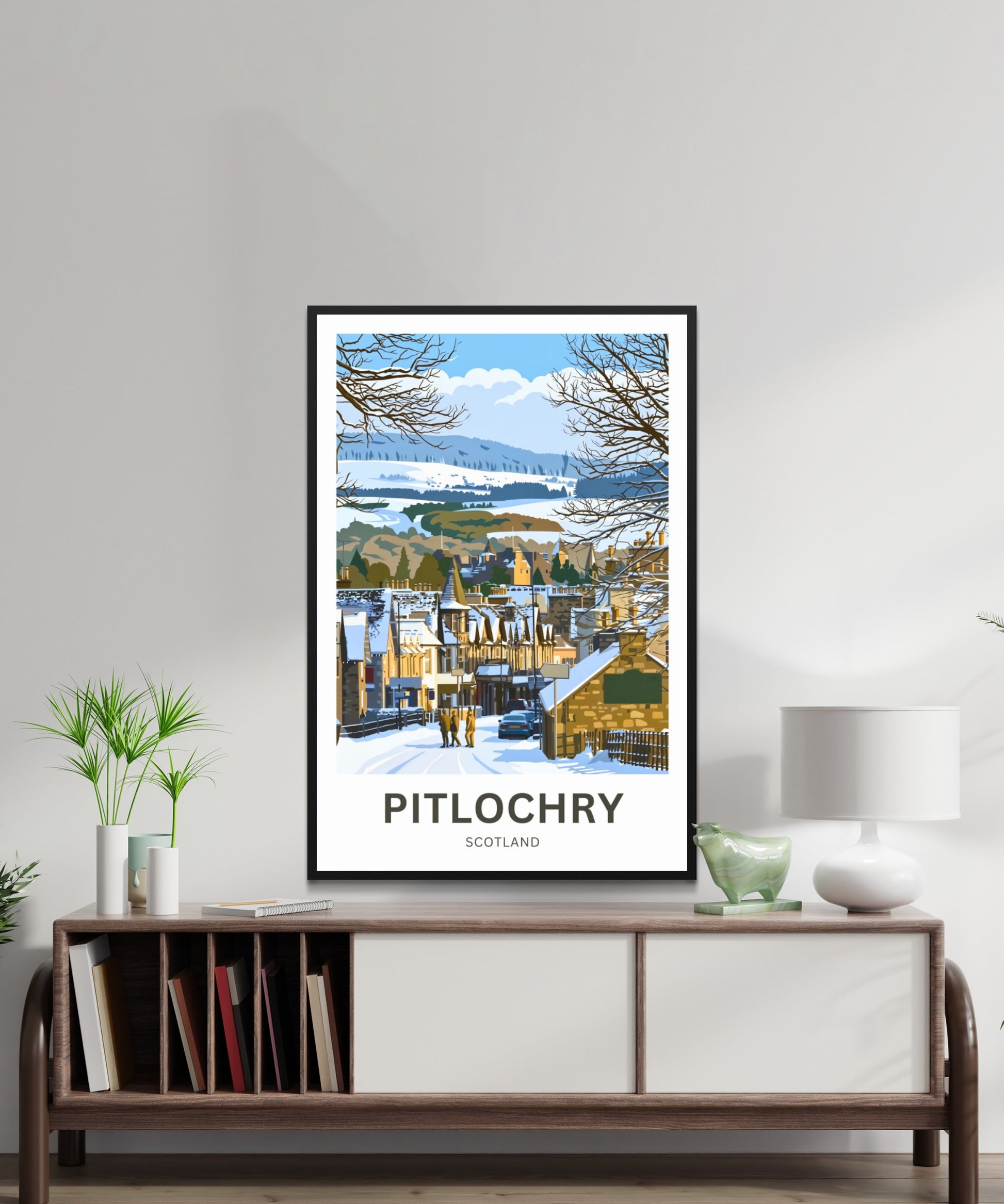 Are you looking for modern, minimalist, and aesthetic wall decoration to elevate your interior design? Then you will fall in love with this wall art print of Pitlochry!