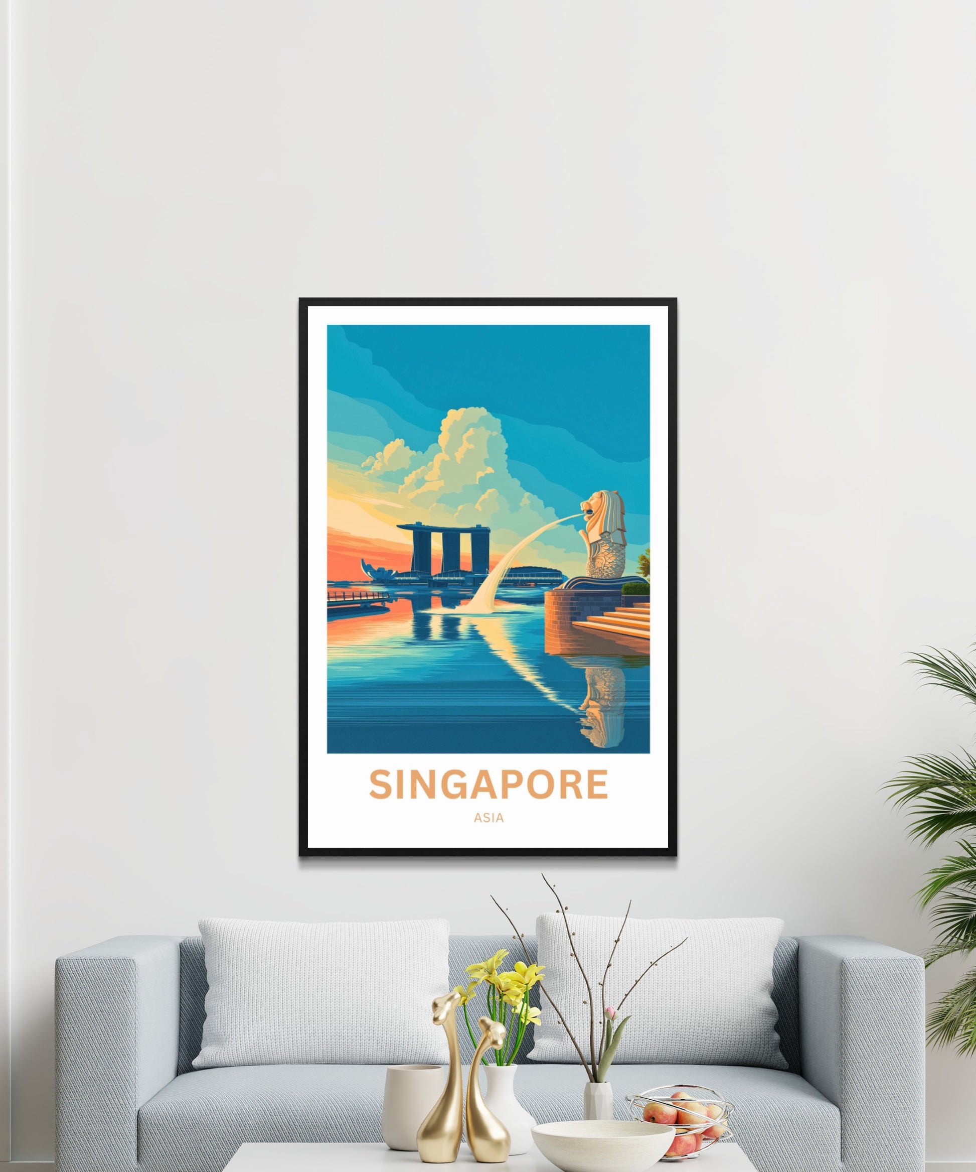 Are you looking for modern, minimalist, and aesthetic wall decoration to elevate your interior design? Then you will fall in love with this wall art print of Singapore!
