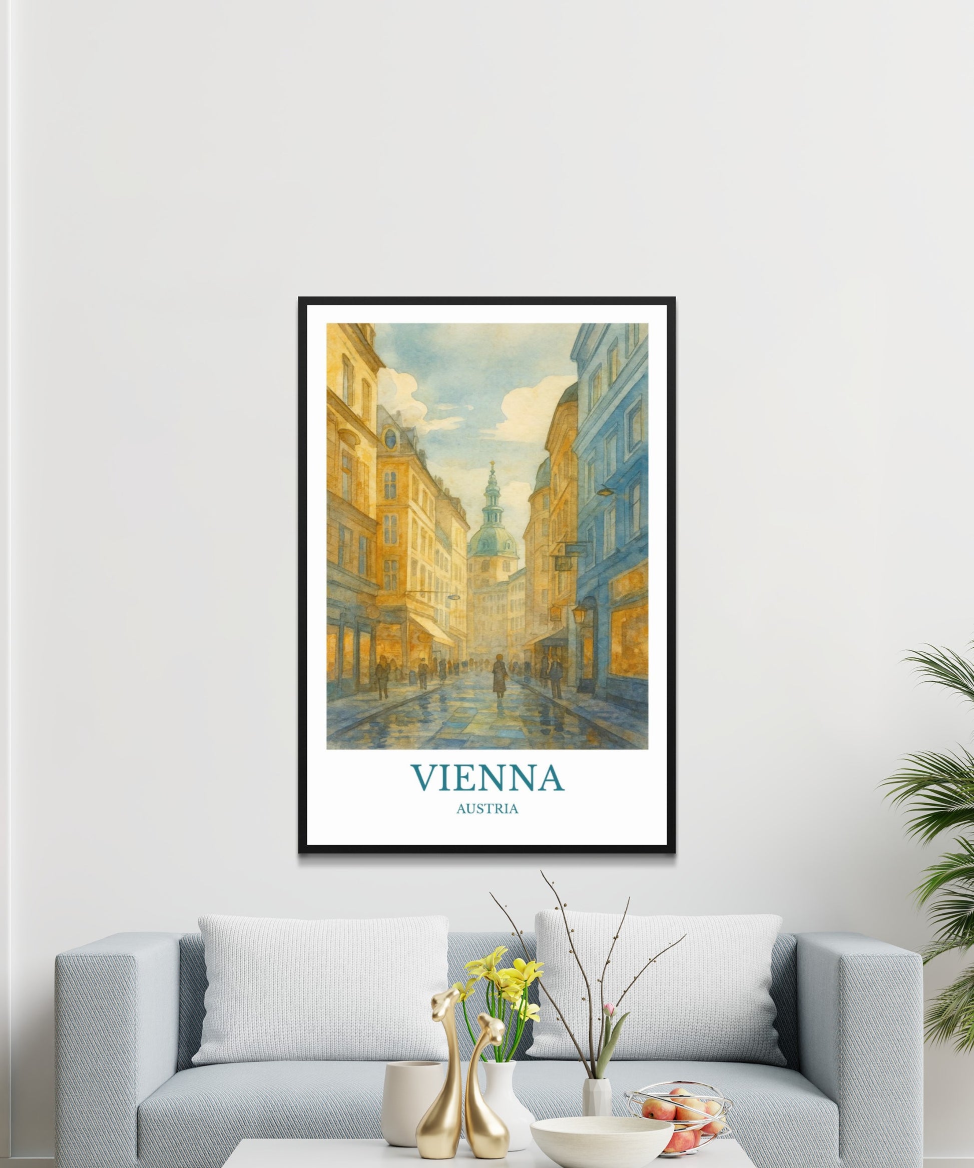 Vienna Print – Designed in a beautiful vintage watercolor style. Printed on premium quality paper, and beautiful wooden framing options.