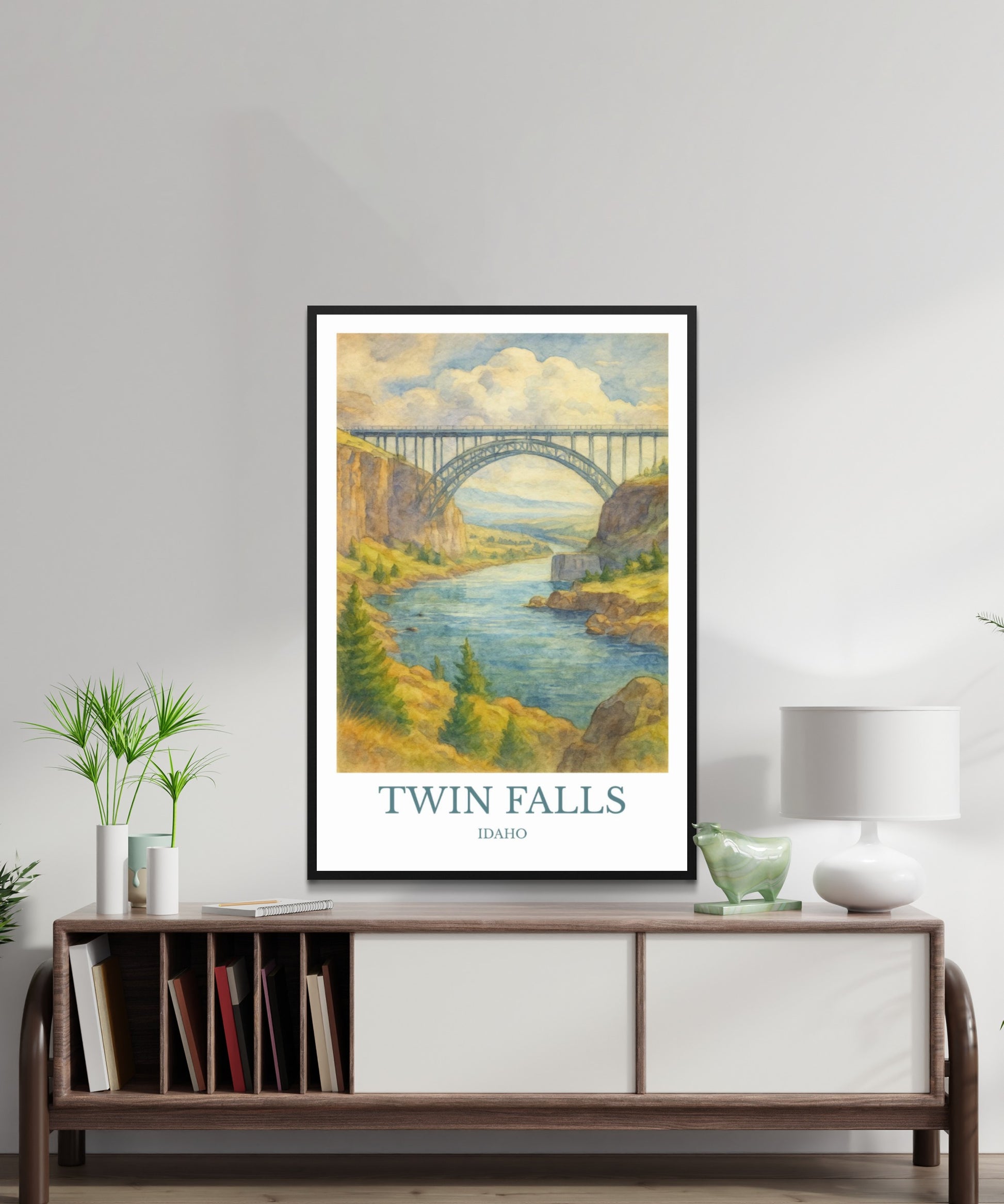 Twin Falls, Watercolor design poster, Idaho Print, Twin Falls Wall Art
