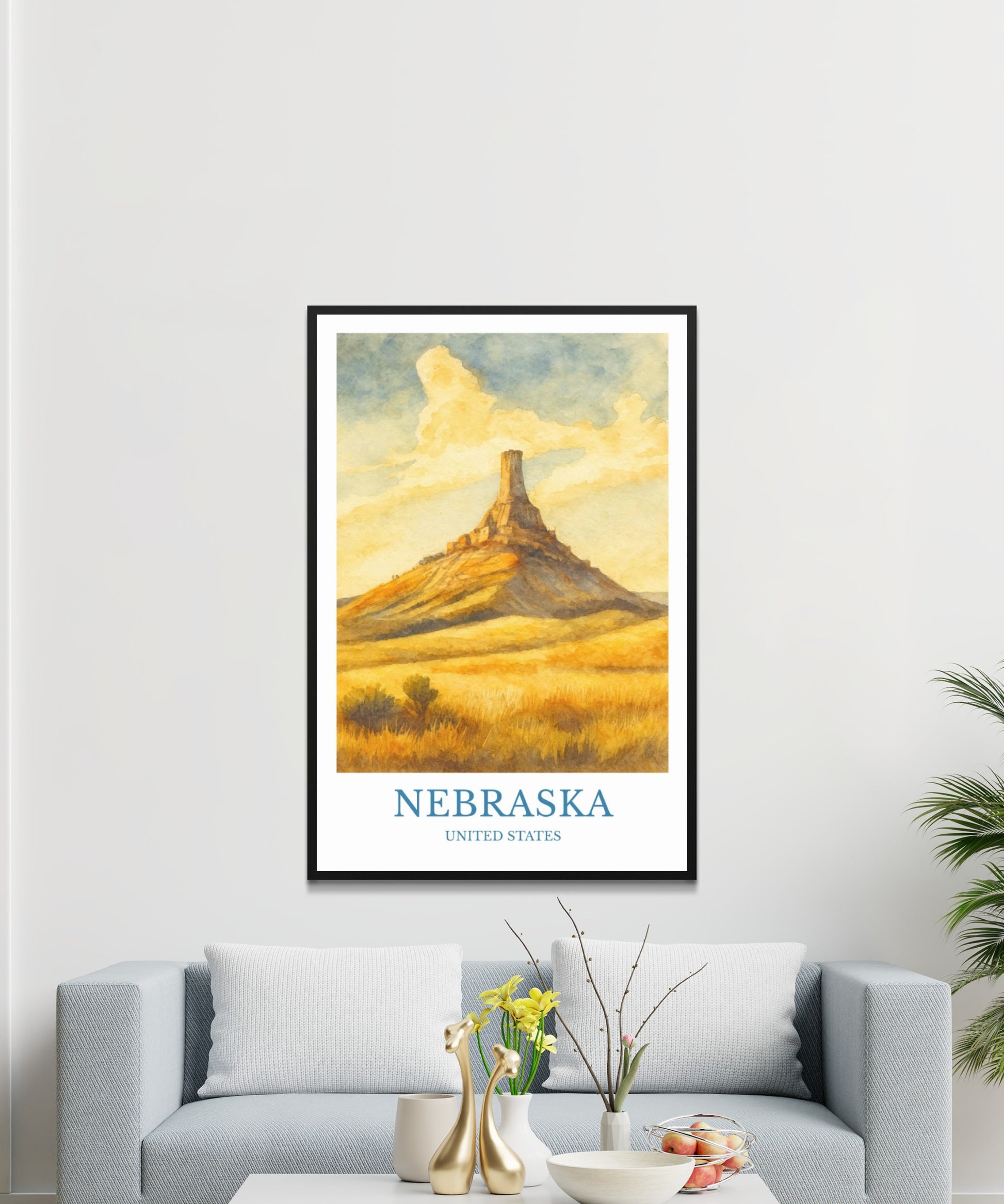 Nebraska, Watercolor design poster, United States Print, Nebraska Wall Art