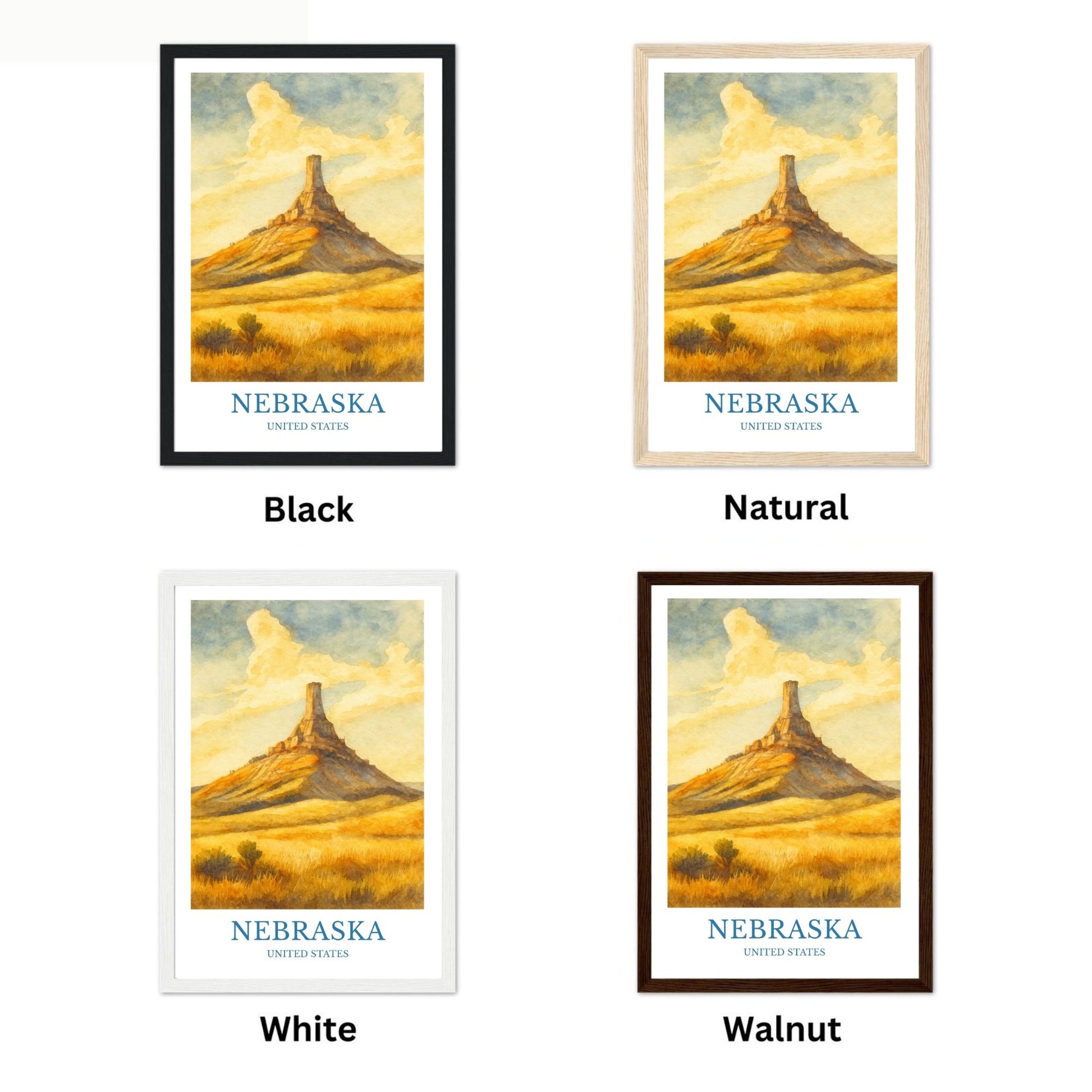 Nebraska Print – Designed in a beautiful vintage watercolor style. Printed on premium quality paper, and beautiful wooden framing options.