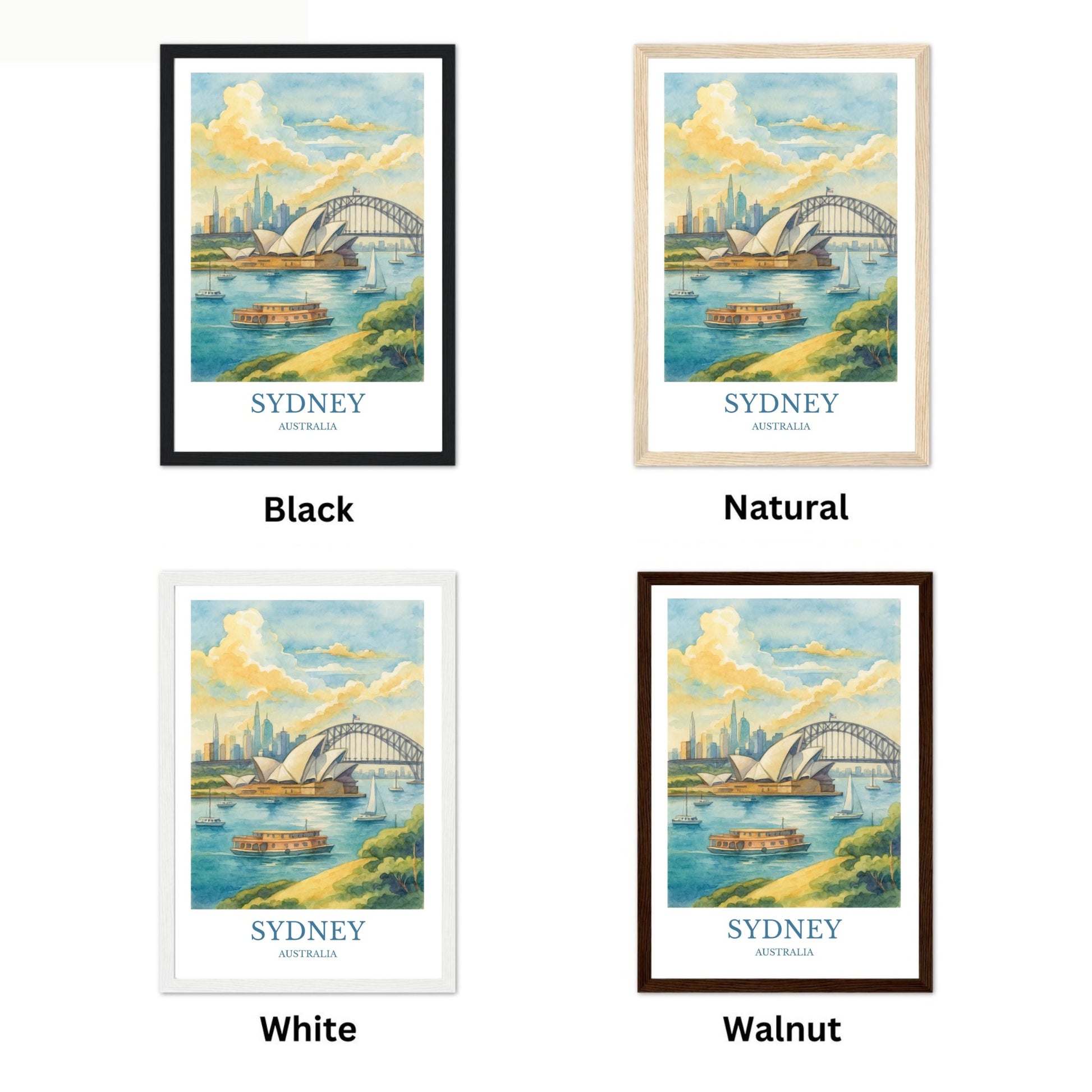 Sydney Print – Designed in a beautiful vintage watercolor style. Printed on premium quality paper, and beautiful wooden framing options.