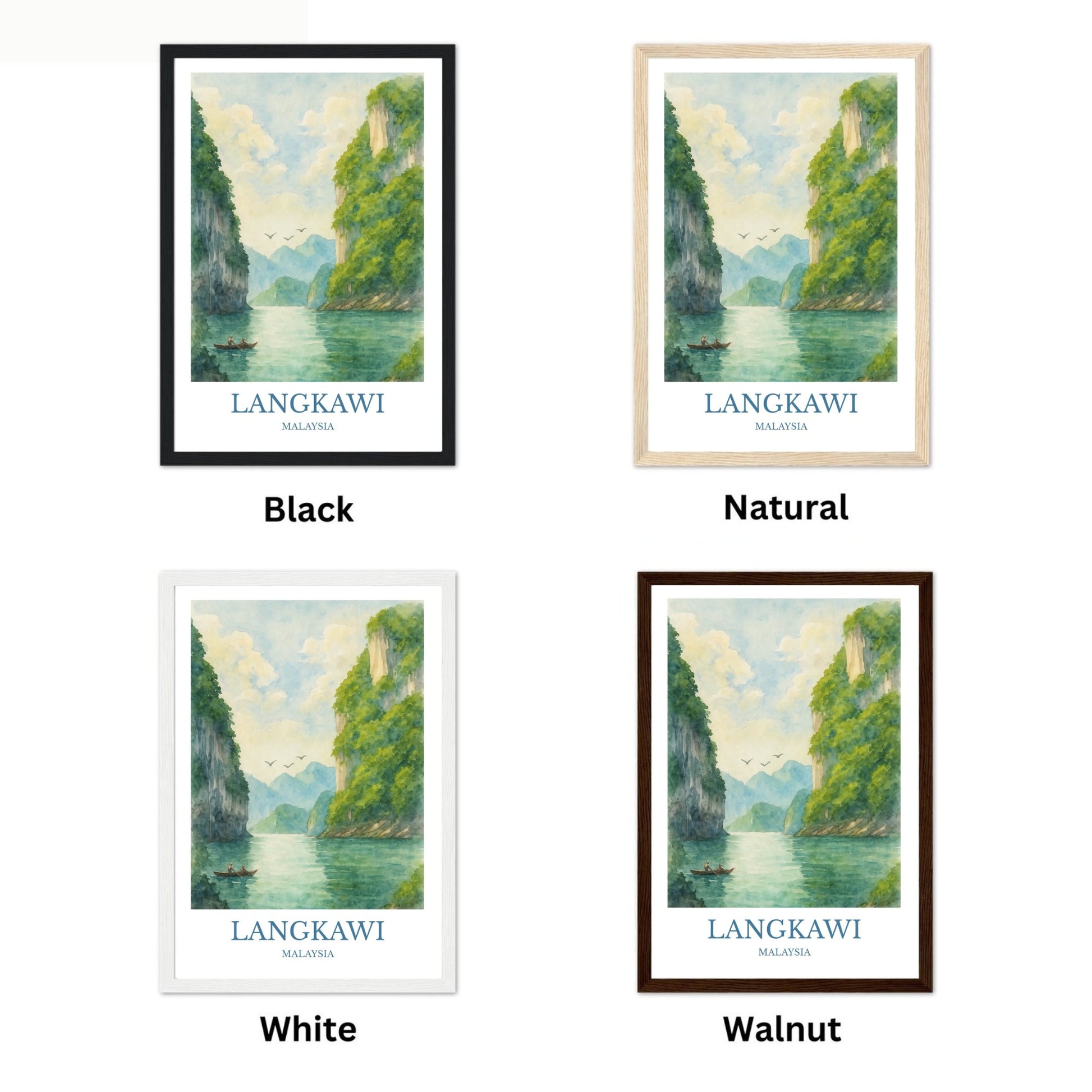 Langkawi Print – Designed in a beautiful vintage watercolor style. Printed on premium quality paper, and beautiful wooden framing options.