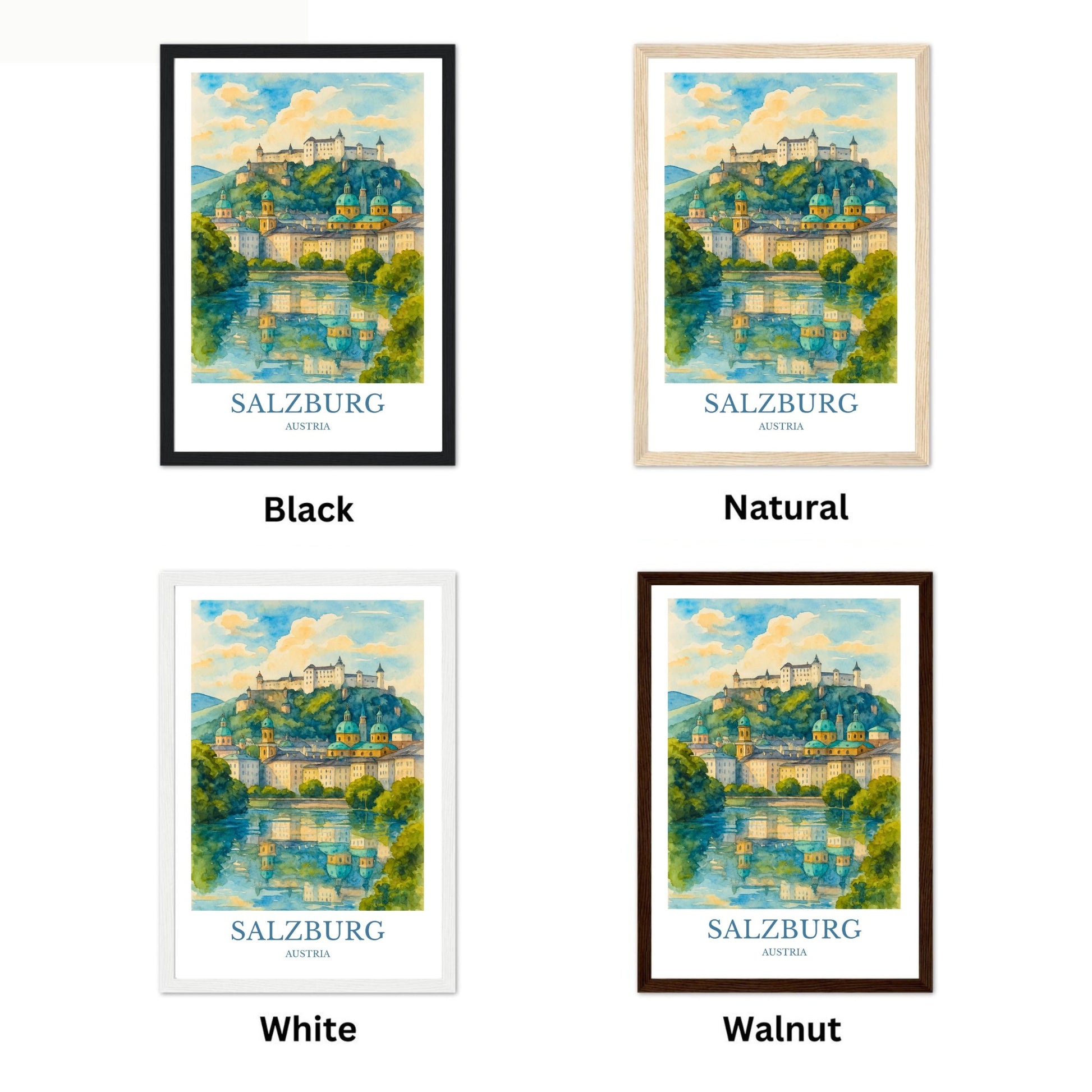 Salzburg Print – Designed in a beautiful vintage watercolor style. Printed on premium quality paper, and beautiful wooden framing options.
