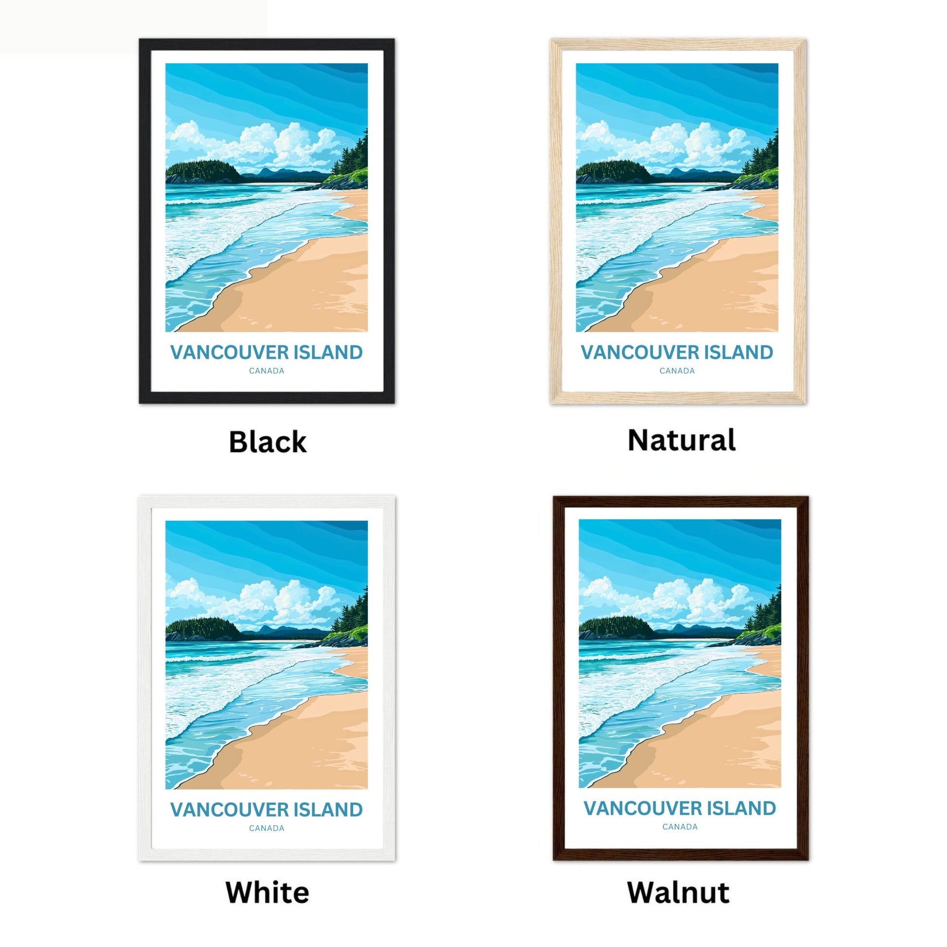At our shop, we offer a framing service to help you enhance and preserve your artwork. We offer a selection of four beautiful wooden frames to choose from: Black, Walnut, Natural, and White