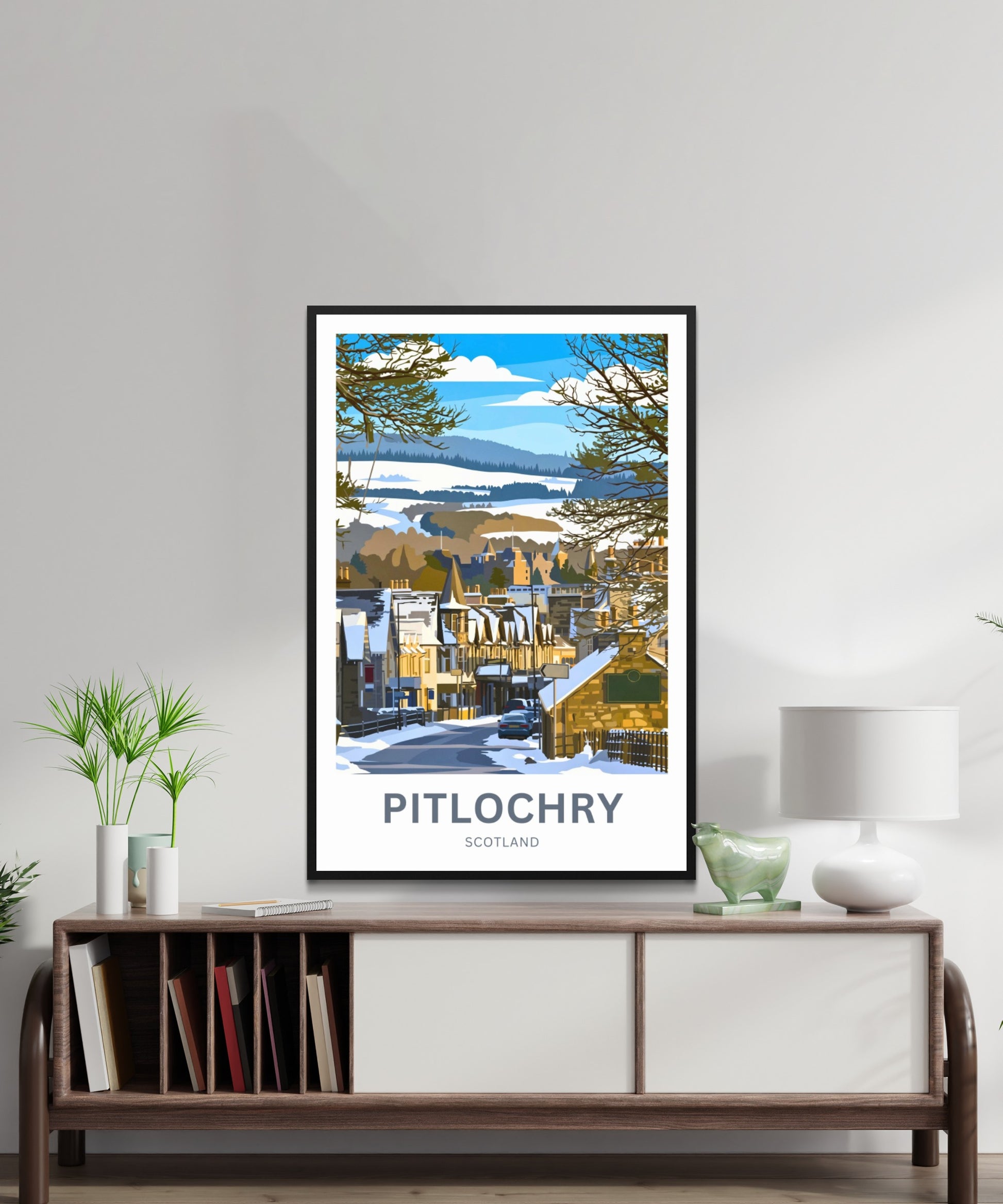 Are you looking for modern, minimalist, and aesthetic wall decoration to elevate your interior design? Then you will fall in love with this wall art print of Pitlochry!