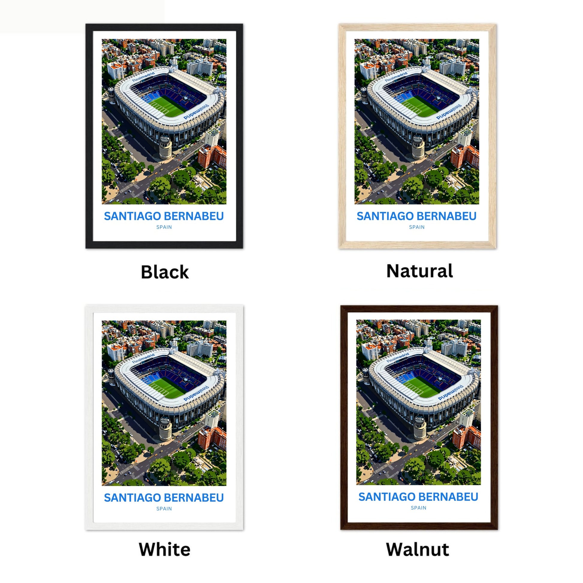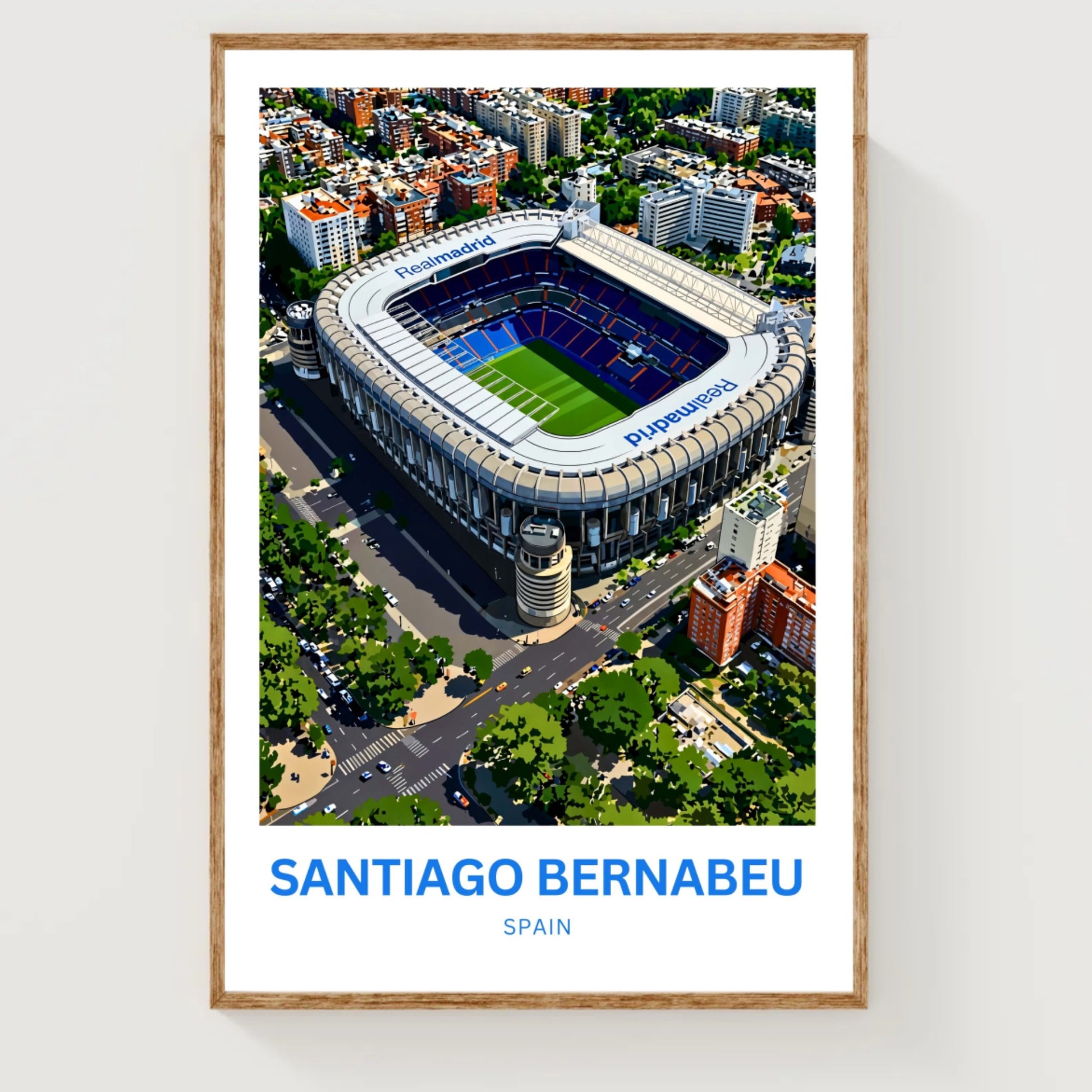 Are you looking for modern, minimalist, and aesthetic wall decoration to elevate your interior design? Then you will fall in love with this wall art print of Santiago Bernabéu Stadium!